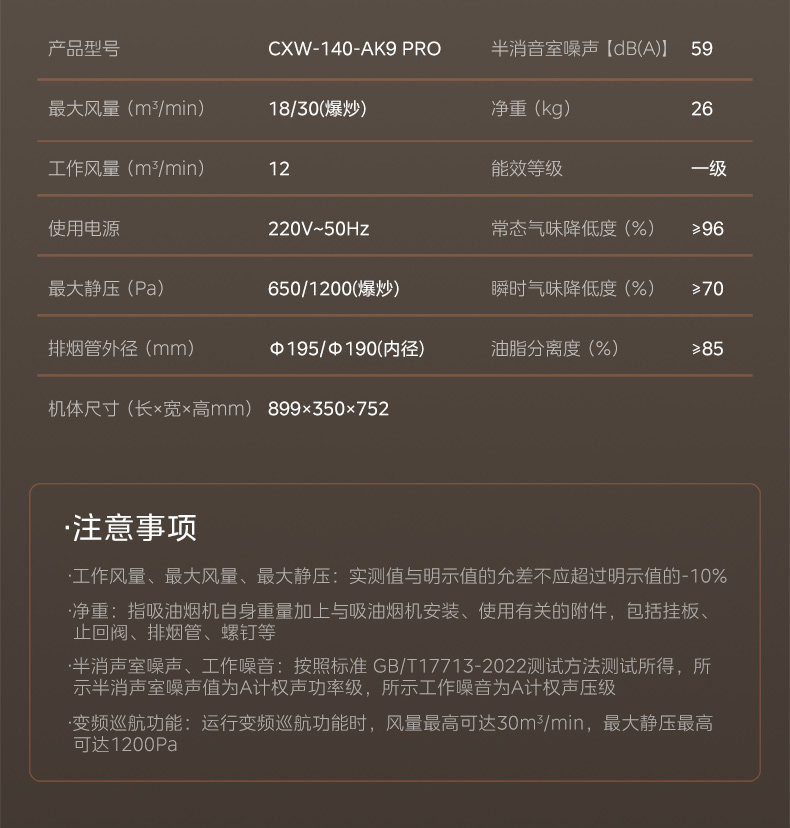 | Range Hood Exhaust Volume | 30 M³/Min |