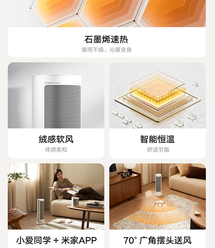 Mijia Graphene Heater for Home Use, Small Energy-Saving Heater, Little Sun 2000W High-Power Three-Dimensional Heating