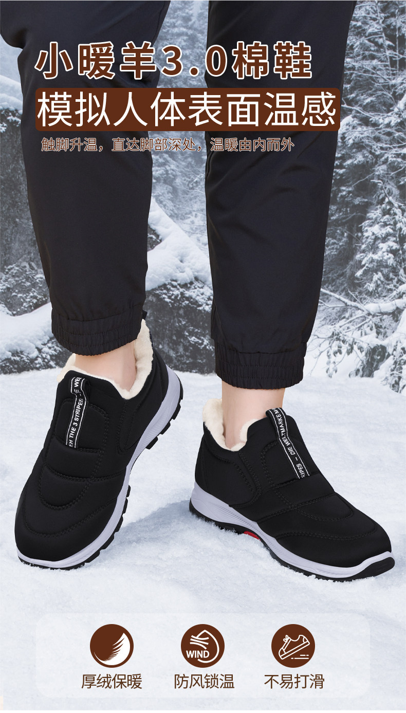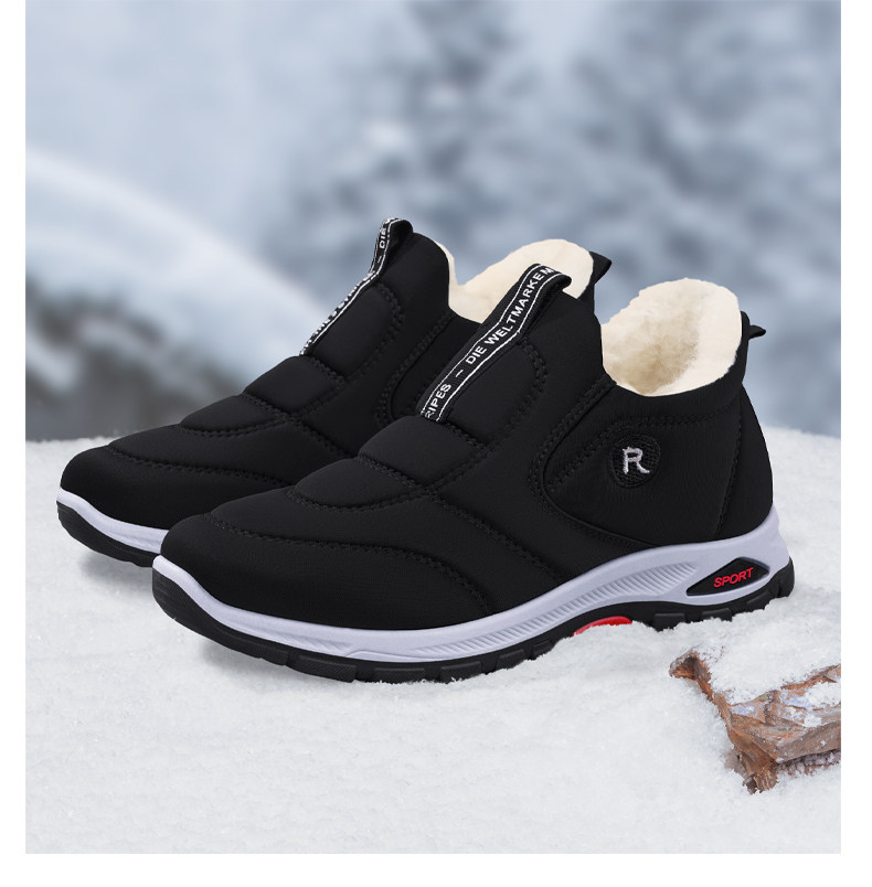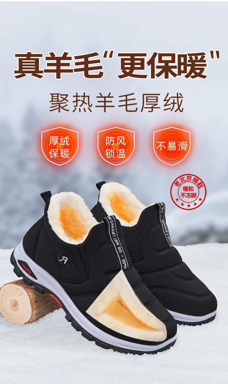 Old Beijing Cotton Shoes for Men 2025 New Winter Style, Fleece-Lined, Thickened, Waterproof, Warm Wool Shoes for Dads and Elderly, Cold-Proof Cotton Shoes