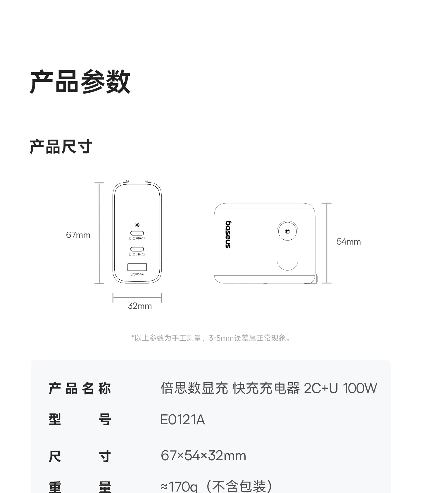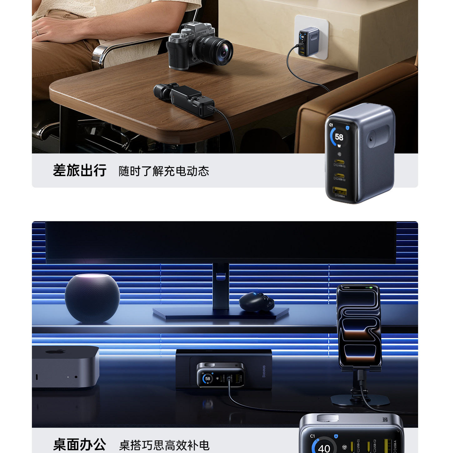 Baseus 100W Digital Display Charger Gallium Nitride Laptop iPad Air Charging Head Suitable for Huawei Xiaomi Apple Iphone17Promax Fast Charging Head Plug