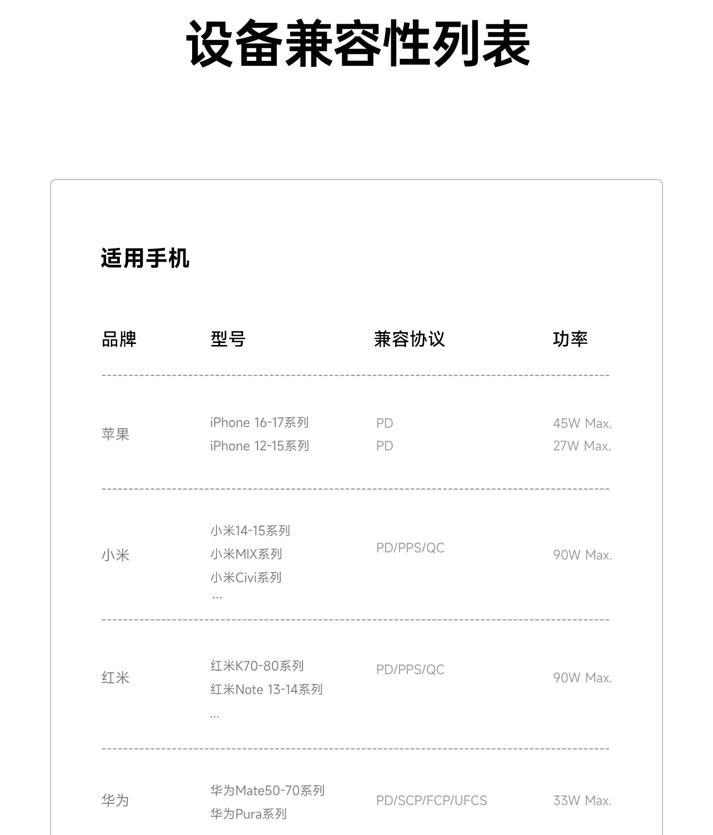 | Fast Charging Protocol | PD3.0,PPS,UFCS |