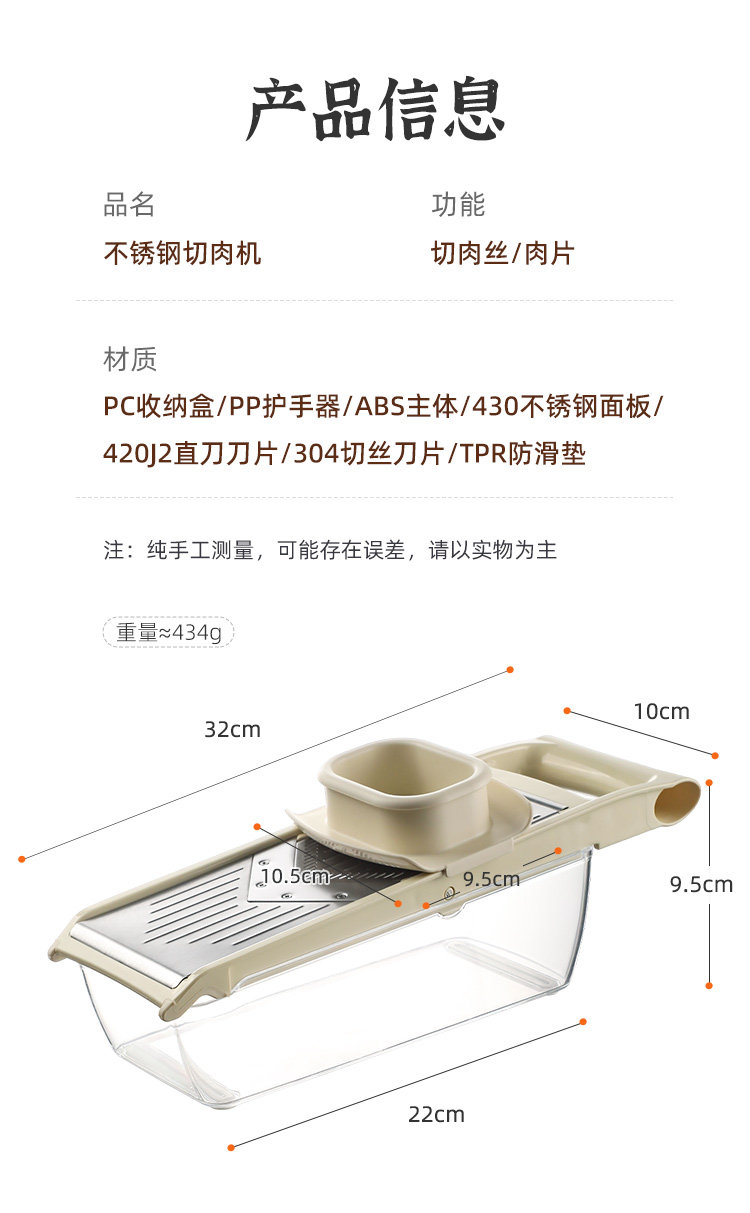 | Color Classification | The Basic Model Only Cuts Meat Slices [Thickness Adjustable],The Upgraded Model Can Cut Both Meat Slices and Shreds [Thickness Adjustable] |