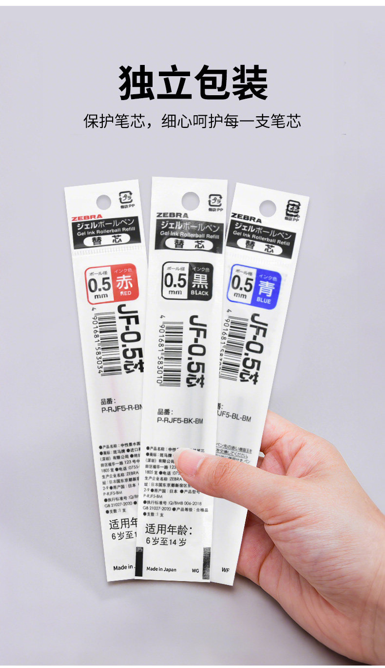 | Color Classification | We Promise to Only Sell Genuine Zebra Brand Stationery!,[JF-0.5 Classic Styles]Black 1 Box/10 Pieces,[JF-0.5 Discount Packs]Black 2 Boxes/20 Pieces,[BJF-0.5 Flower Styles]Black 1 Box/10 Pieces,[JLV-0.5 Quick Drying Style]Black 1 Box/10 Pieces,[MJF-0.5. Does Not Smudge]Black 1 Box/10 Pieces,[JF-0.5 Classic Styles]Red 1 Box/10 Pieces,[JF-0.5 Classic Styles]Blue 1 Box/10 Pieces,[JF-0.5 Classic Styles]Blue Black 1 Box/10 Pieces,[Jf Classic - Long-Lasting Power Combo]Black Pen + 10 Black Refills,[Jf Classic - Long-Lasting Power Combo]Red Pen + 10 Red Cores,[Jf Classic - Long-Lasting Power Combo]Blue Pen + 10 Blue Cores,[Quick-Dry Model, Long-Lasting Combination]Black Pen + 10 Black Refills,[Non-Smudging, Long-Lasting Combination]Black Pen + 10 Black Refills,[Floral Design - Extended Battery Life Combo]Black Pen + 10 Black Refills,[JF-0.5 Classic Styles]1 Black Pen + 5 Black Refills,[JF-0.5 Classic Styles]1 Red Pen + 5 Red Cores,[JF-0.5 Classic Styles]1 Blue Pen + 5 Blue Cores,[MJF-0.5. Does Not Smudge]1 Black Pen + 5 Black Refills,[JLV-0.5 Quick Drying Style]1 Black Pen + 5 Black Refills,[BJF-0.5 Flower Styles]1 Black Pen + 5 Black Refills,[JF-0.5 Classic Styles]Black, 5-Pack,[JF-0.5 Classic Styles]Red, 5-Pack,[JF-0.5 Classic Styles]Blue, 5-Pack,[JF-0.5 Classic Styles]5 Pieces of Blue and Black,[MJF-0.5. Does Not Smudge]Black, 5-Pack,[JLV-0.5 Quick Drying Style]Black, 5-Pack,[BJF-0.5 Flower Styles]Black, 5-Pack |
