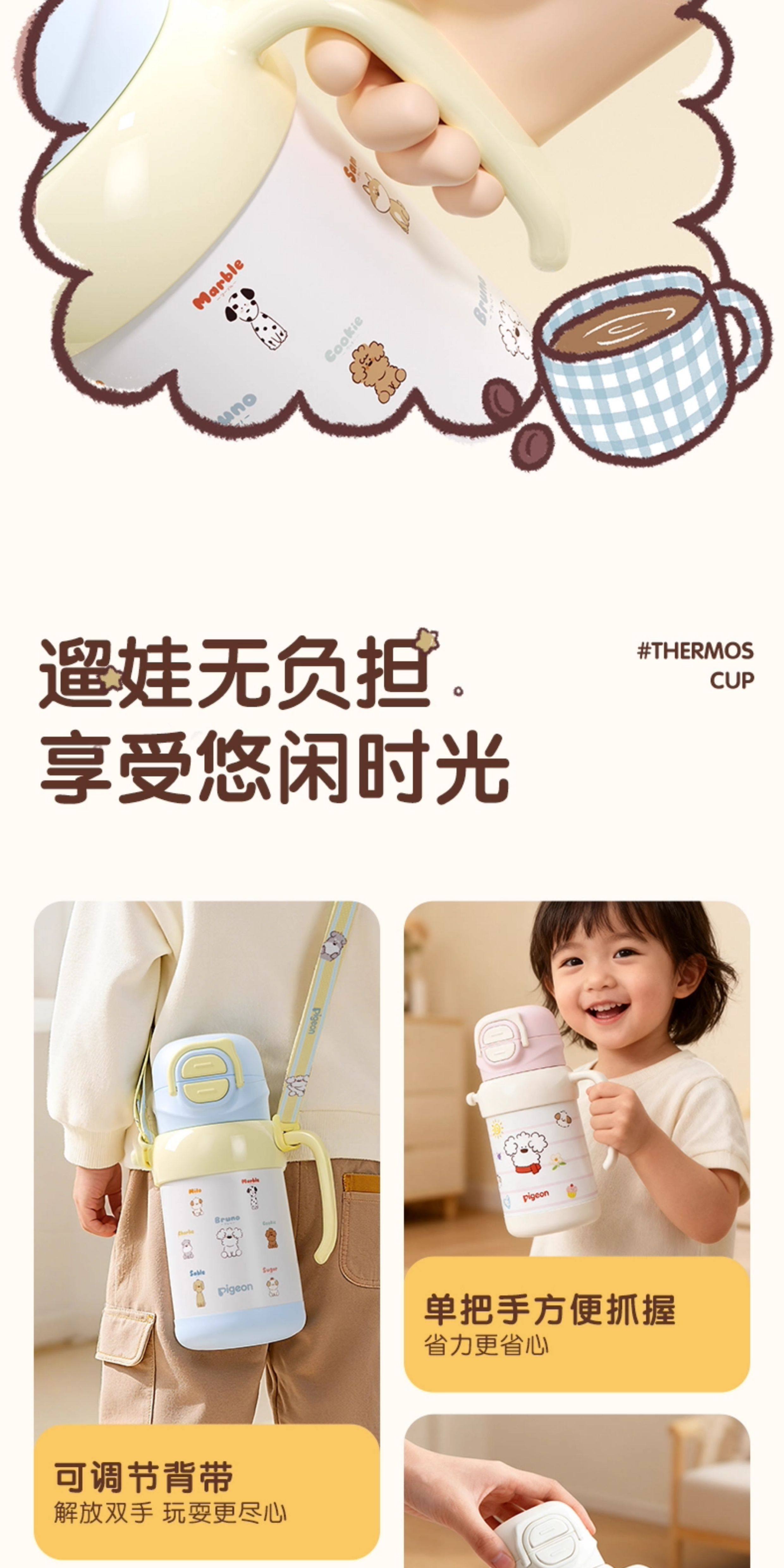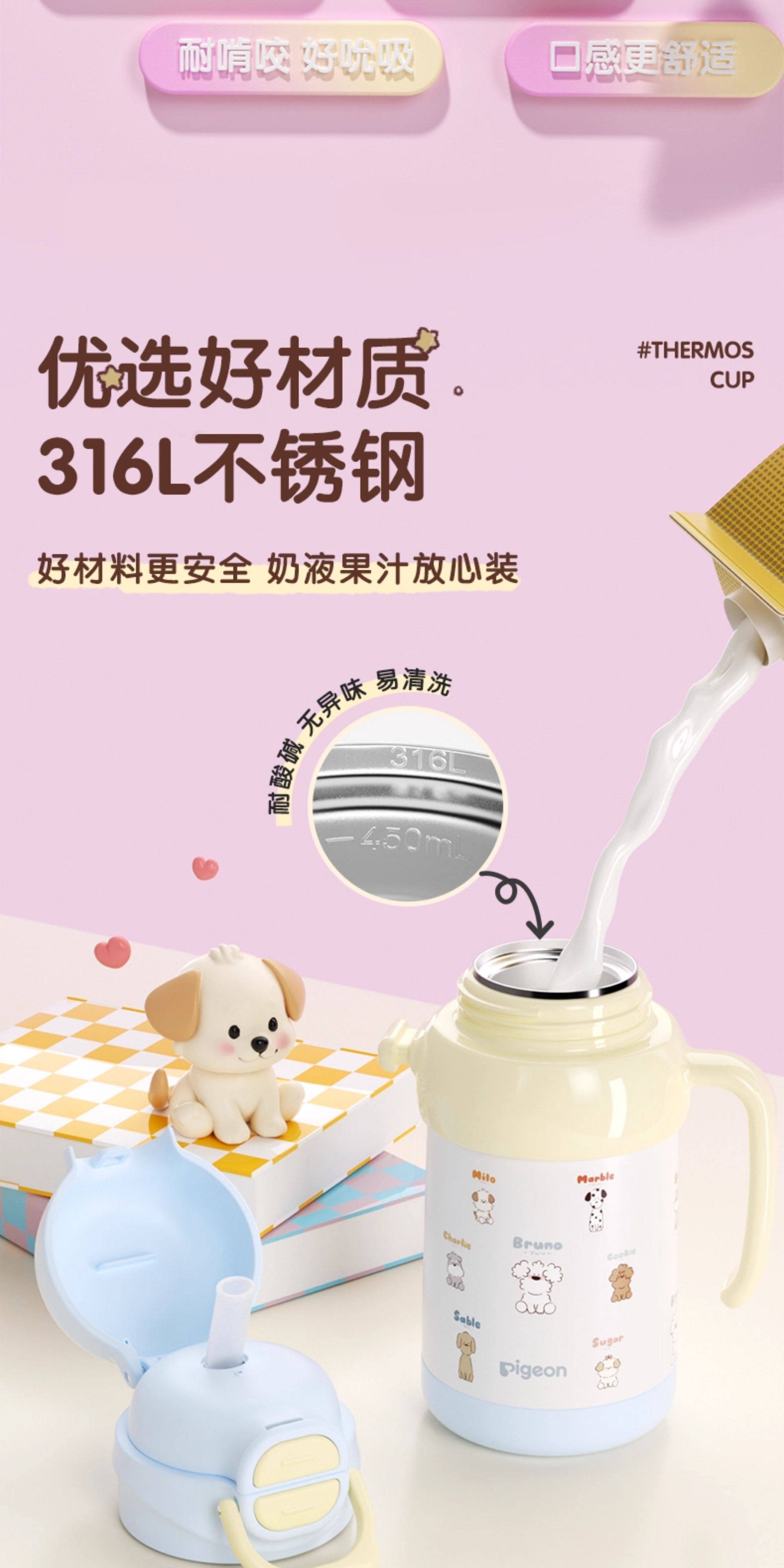 Pigeon Insulated Cup Baby Water Cup Drinking Water On-The-Go Direct Drinking Cup Straw Cup for Children 3 Years+ Official Flagship Store