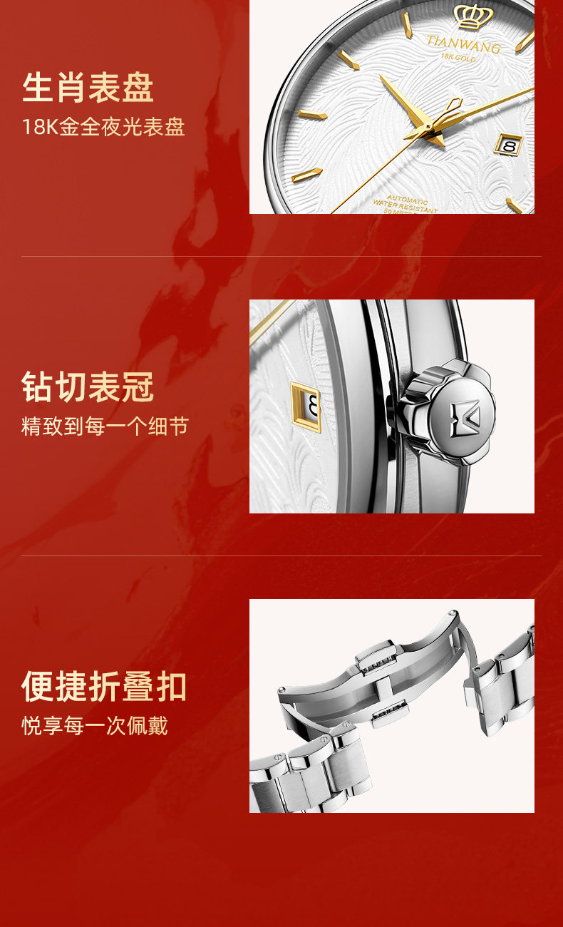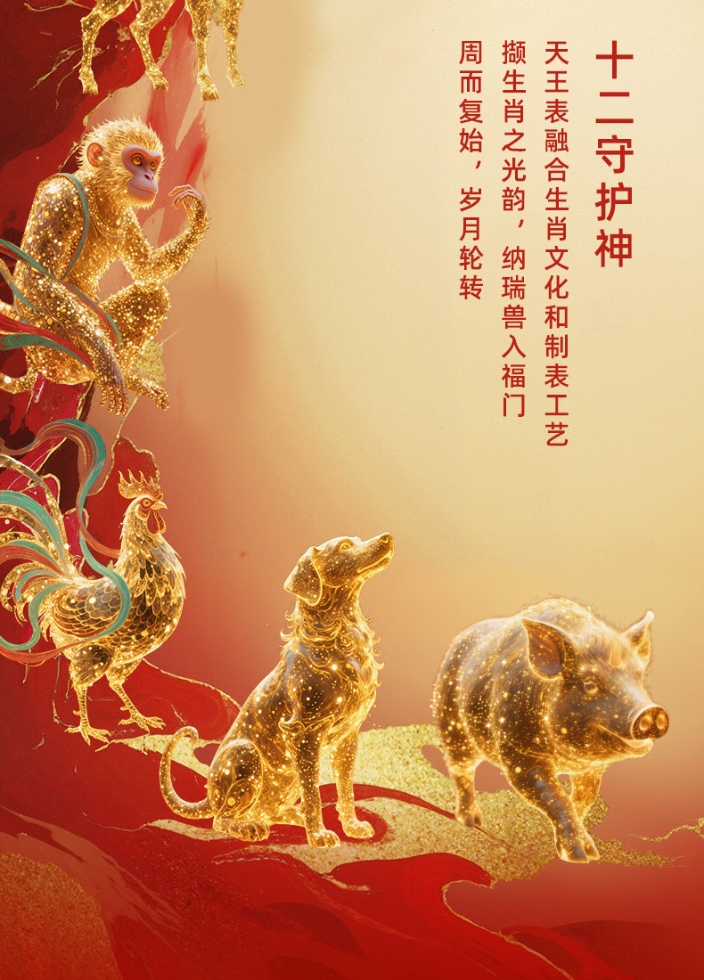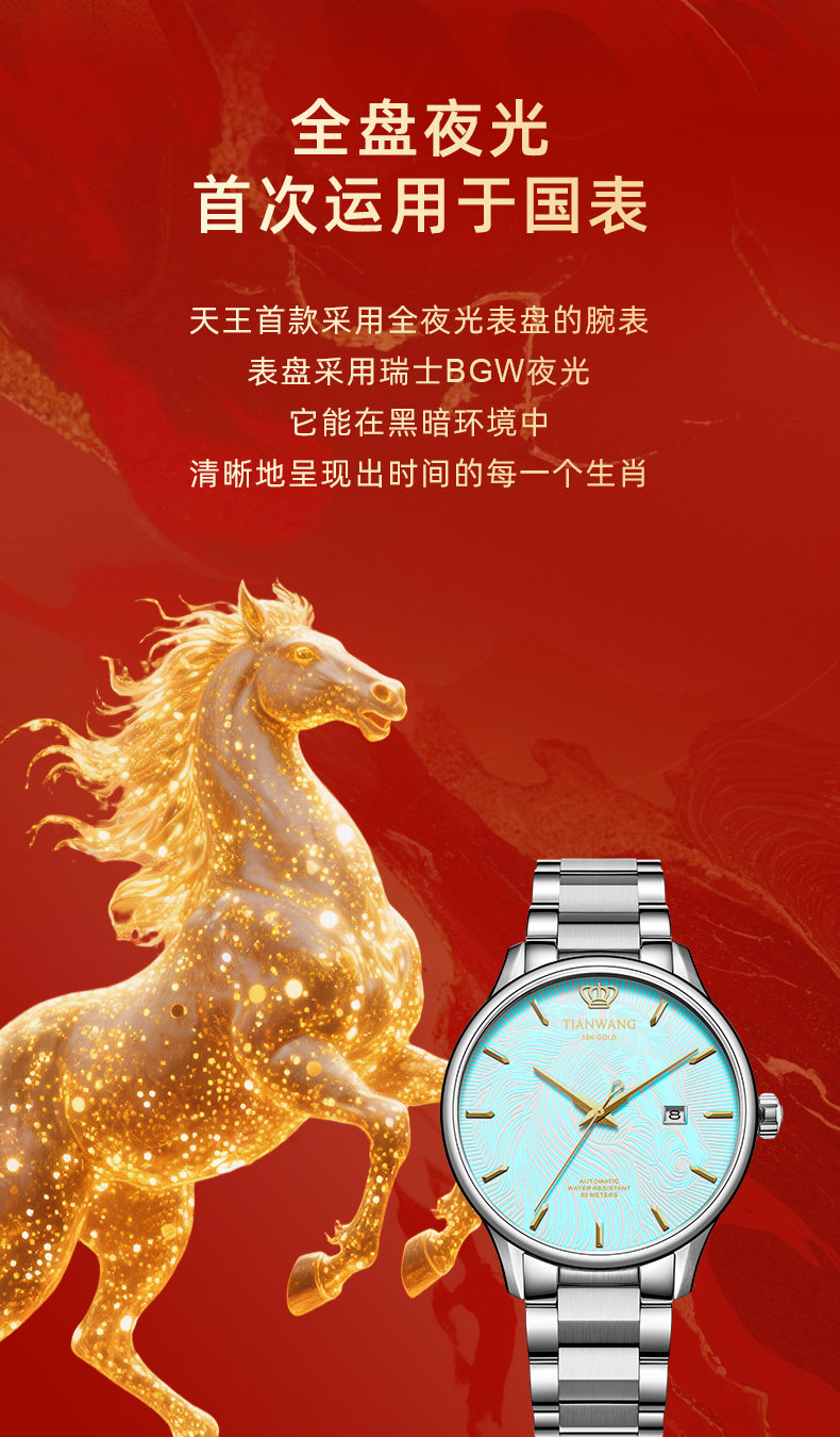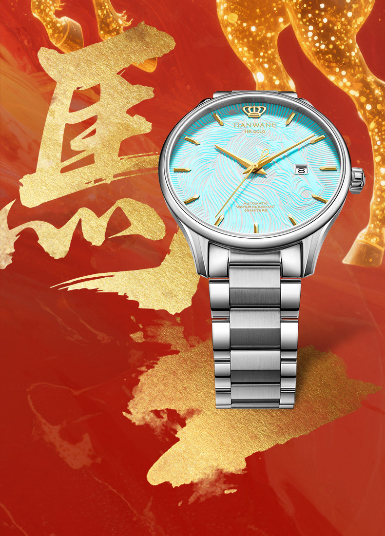 Tianwang Gold Label Blessing Twelve Zodiac Legendary Series 18K Gold Automatic Mechanical Watch Men's Year of the Horse Watch 51524
