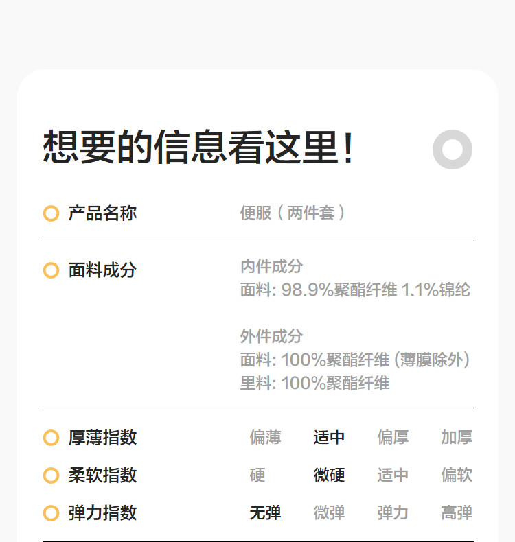 | Material Composition | Polyester Fiber 98.9% Polyamide Fiber (Nylon) 1.1% |