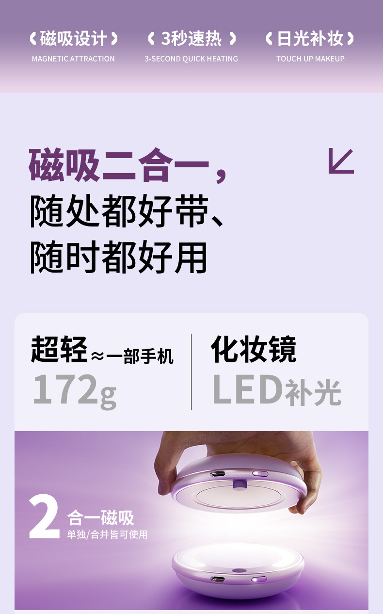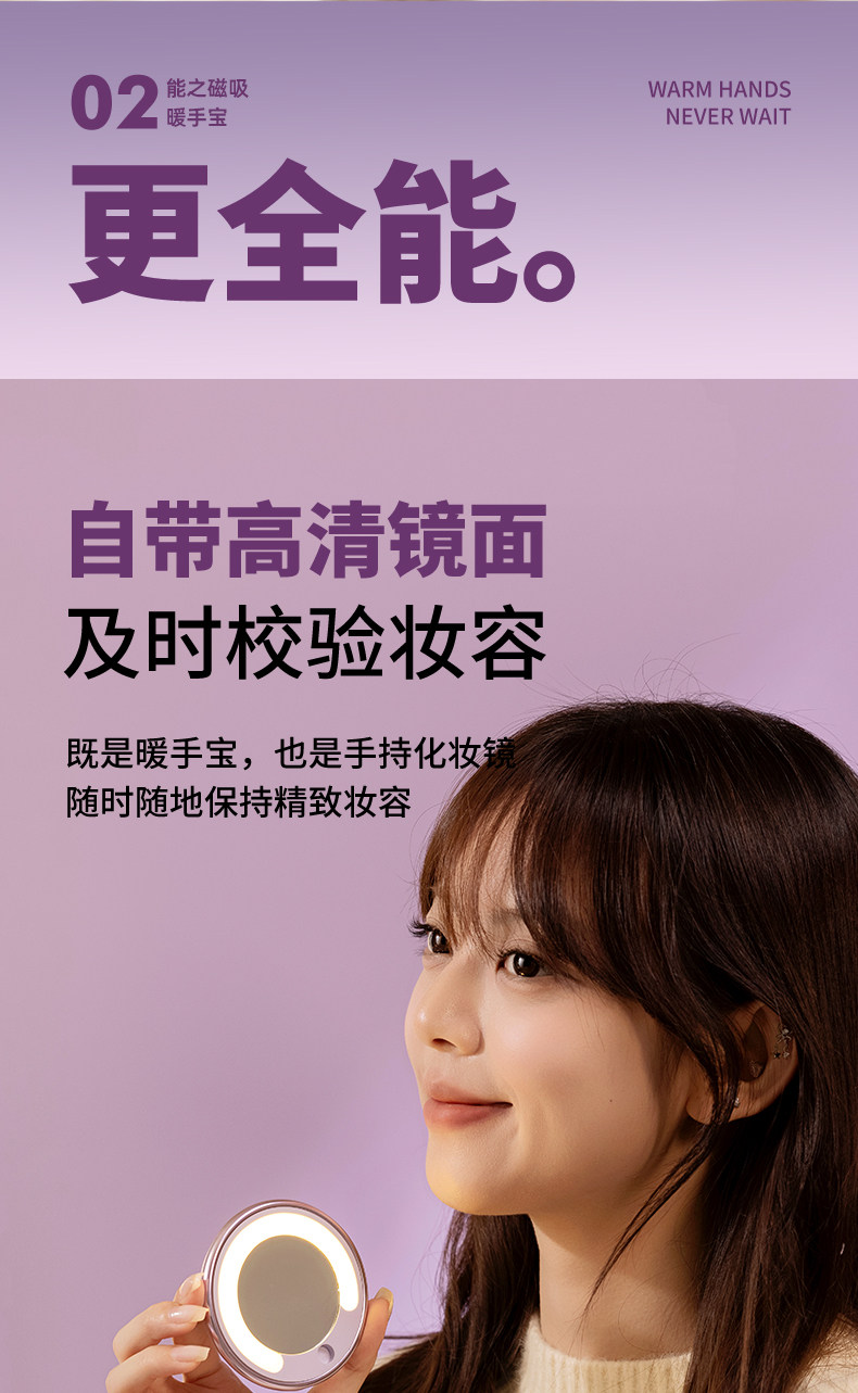 [3C Certified Hand Warmer] Magnetic Hand Warmer, Handheld Mini Portable Gift for Girls, Practical Rechargeable Detachable 2-in-1 Fill Light Makeup Mirror 2026 New Model