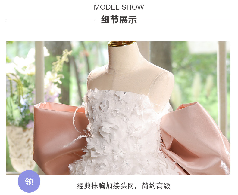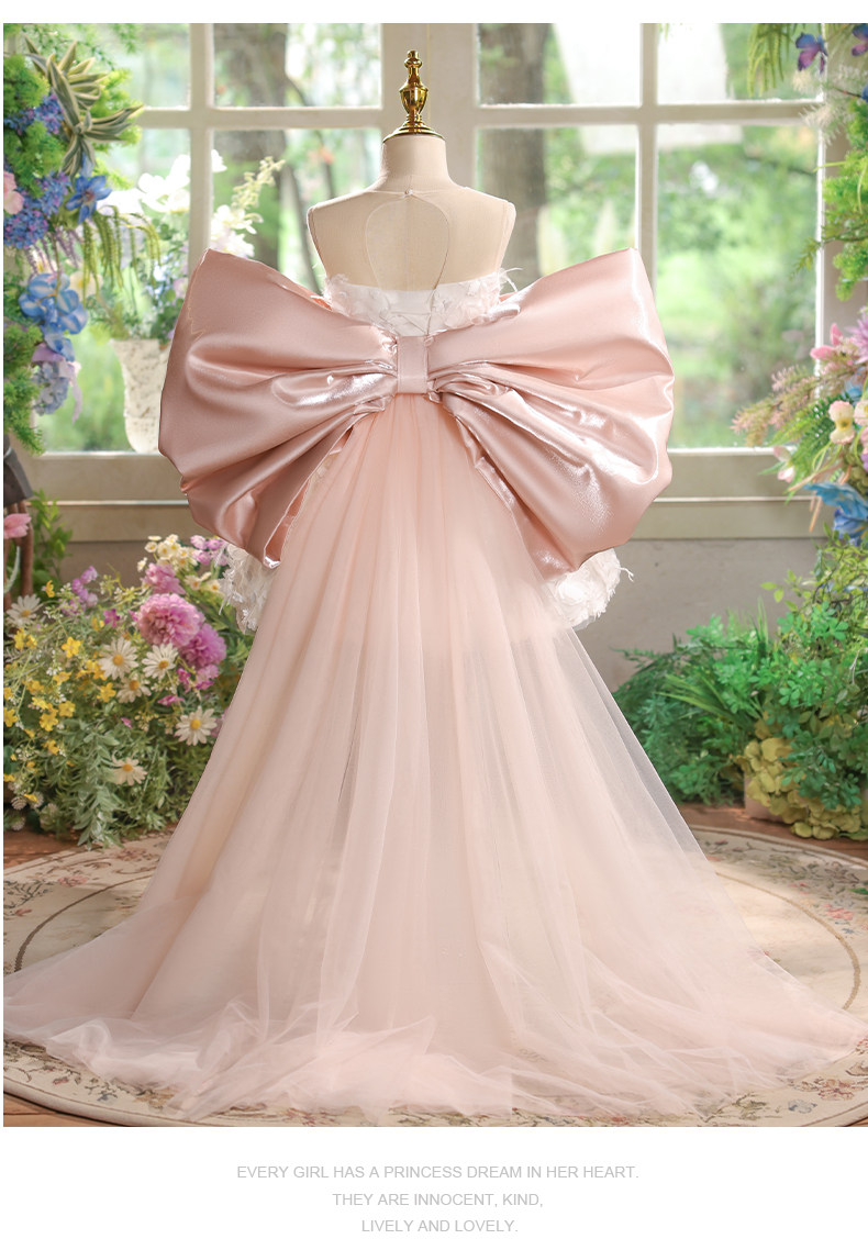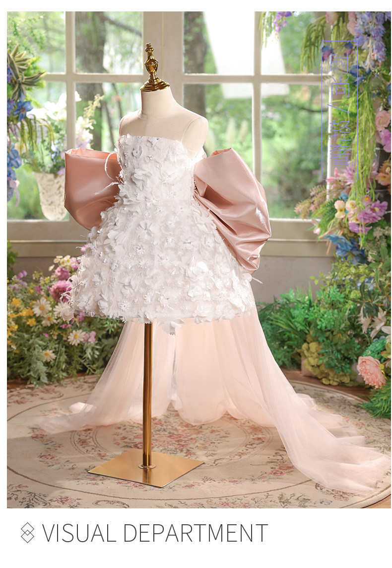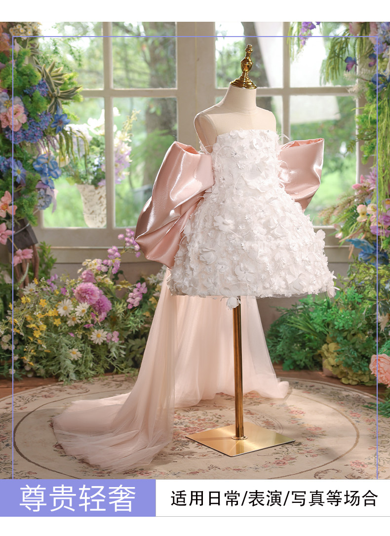 Girls' Dress 2025 New Model Children's Birthday Princess Dress High-End Piano Host Runway Performance Costume with Train