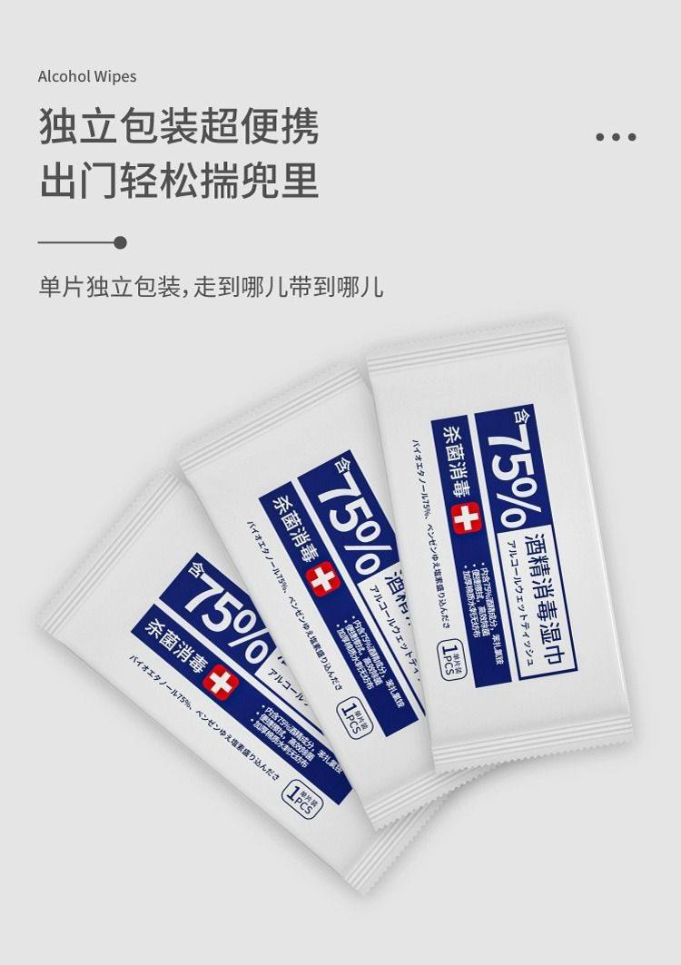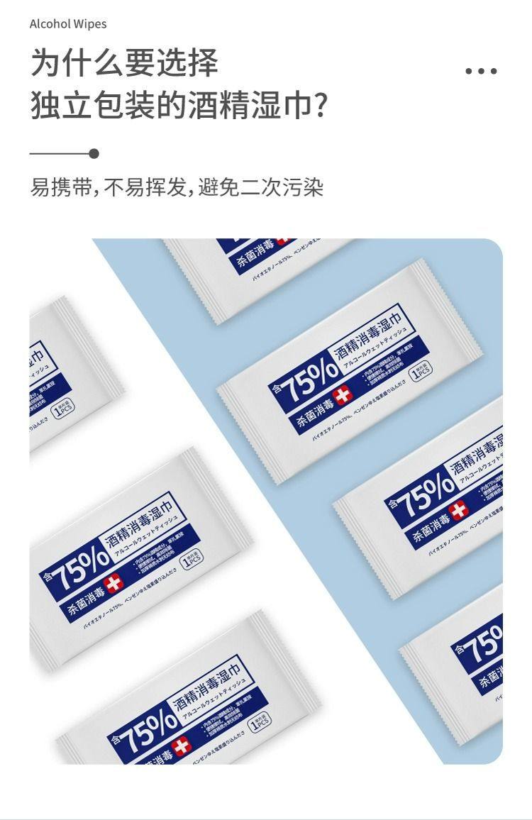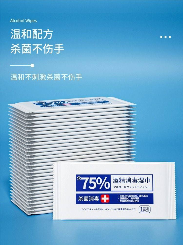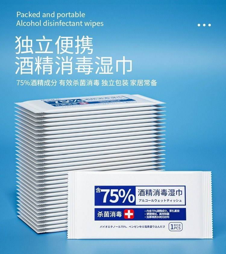 75% Alcohol Wipes Individually Packaged for Household Sterilization and Disinfection, Small Package Disinfectant Wipes, Travel Portable