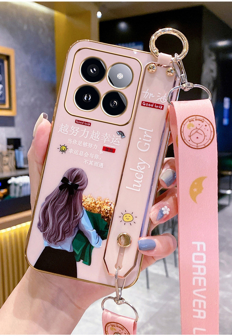 Suitable for Xiaomi 15t Phone Case, Xiaomi15Tpro Protective Silicone Cover, 5g Full Coverage Anti-Drop Mi15T Wristband Stand, Por Soft Case, 15Tp Women's 5g New Crossbody Lanyard, Niche High-End Trendy