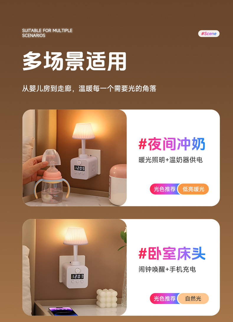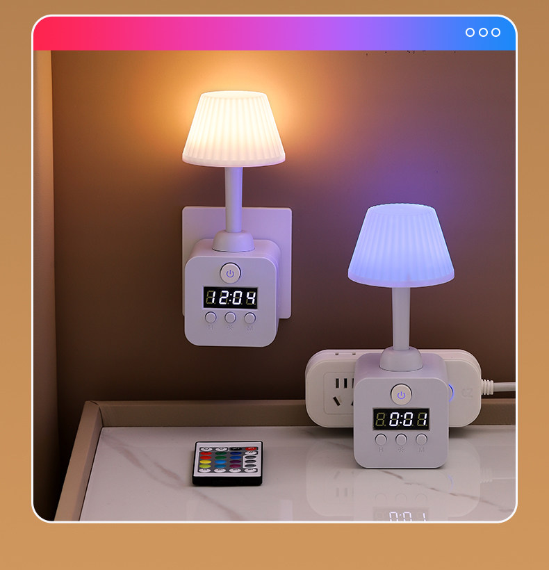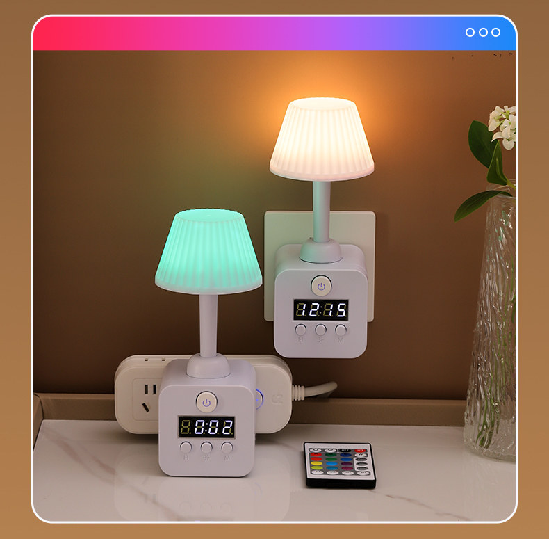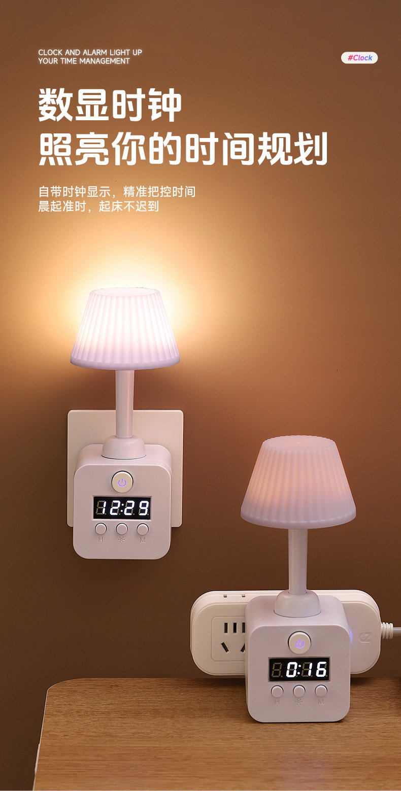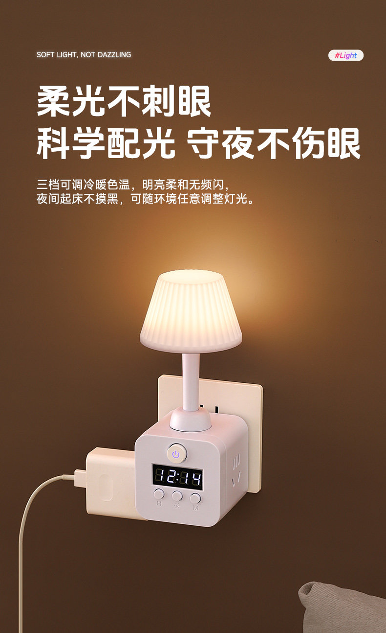 Mi-Style Led Eye-Protection Night Light with Clock, USB Socket, Home Bedroom Cube Bedside Table Lamp, Power Strip Converter