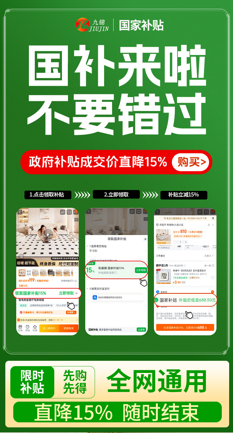 Jiu Jin Carbon Crystal Floor Heating Pad, Graphene Heating Pad for Home Use, Living Room Heating Pad, Floor Heating Pad, Electric Heating Pad