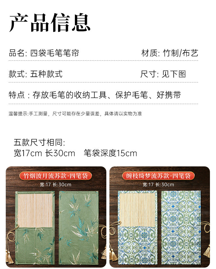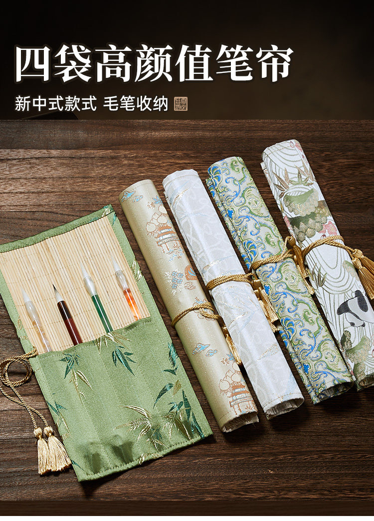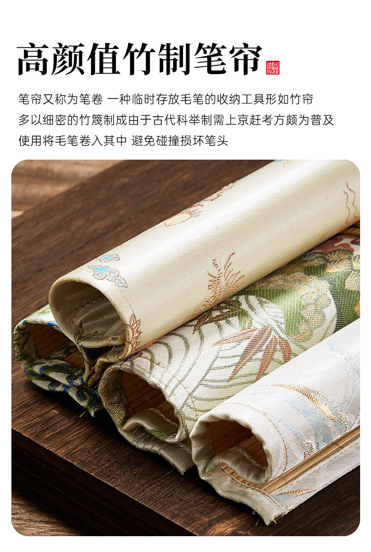 Brush Storage Bag, Creative Antique-Style Bamboo Rolling Curtain, Elegant Study Item, Portable Calligraphy Pen Bag for Beginners