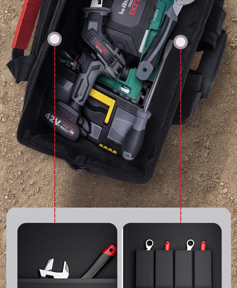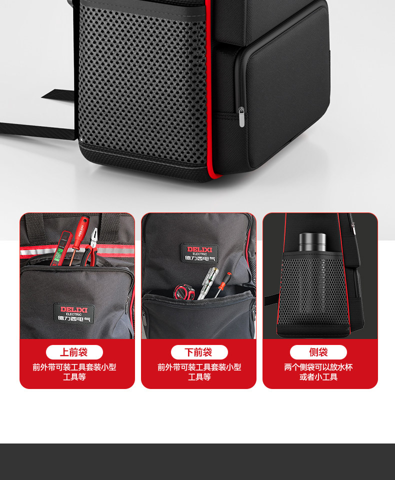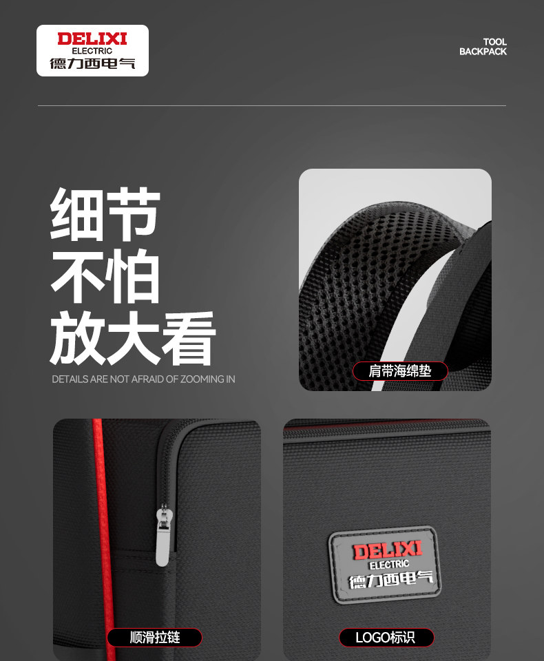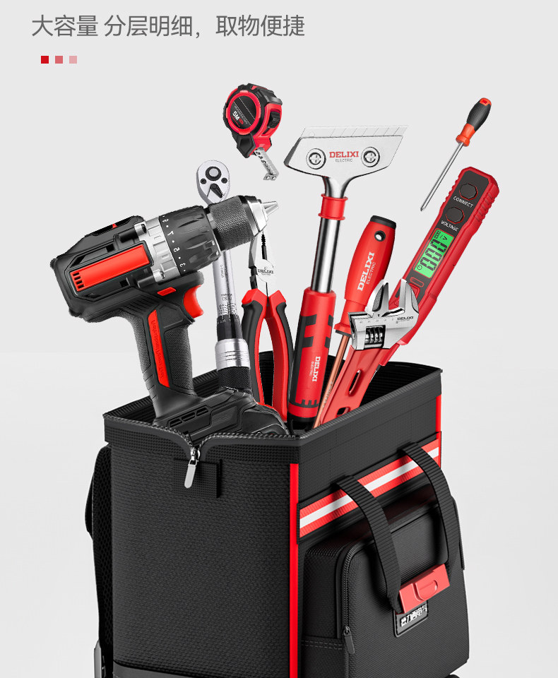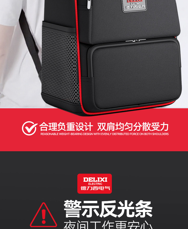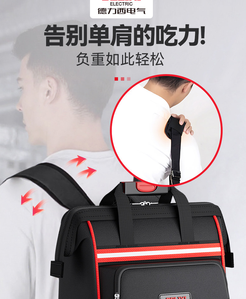 Delixi Electric Double-Shoulder Tool Bag Is Sturdy, Durable, Portable, Canvas Backpack, Multi-Functional Electrician Repair Storage Bag