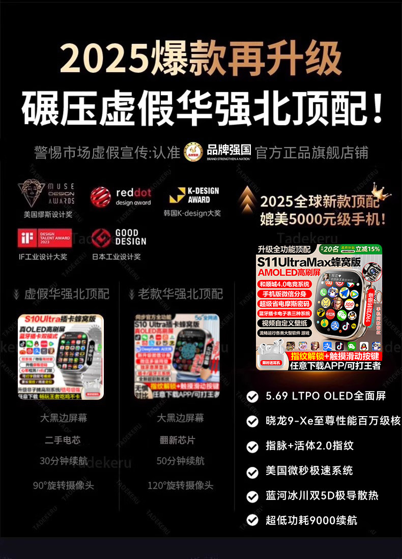 [2025 New Honeycomb Edition]Huaqiangbei S11Ultra Top-Tier Version Watchs10 Phone Watch Smart with Sim Card Slot, Downloadable, for Teenagers, Adults, Women, Men, Sports, Official Store, Genuine Product