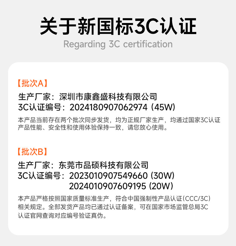 | Color Classification | ▼For 20W Fast Charging [8-14 Series], the Default Package Includes a 20W Charger Head + 1m Pd Cable [Free Pd Cable for Today Only, Limited Time Offer]▼,Tmall Urgent Delivery★8-14 Full Series★Set [Pd20W Fast Charging Head + 1.0m Pd Fast Charging Cable],Tmall Urgent Delivery★8-14 Full Series★Set [Pd20W Fast Charging Head + 1.5m Pd Fast Charging Cable],Tmall Urgent Delivery★8-14 Full Series★Set [Pd20W Fast Charging Head + 2.0m Pd Fast Charging Cable],Tmall Urgent Delivery★8-17 Full Series [Pd20W Charger]★Boxed and Unopened,▼For 30W Fast Charging [8-14 Series], the Default Package Includes a 30W Charger Head + 1m Pd Cable [Free Pd Cable for Today Only, Limited Time Offer]▼,Tmall Urgent Delivery★8-14 Full Series★Set [Pd30W Fast Charging Head + 1.0m Pd Fast Charging Cable],Tmall Urgent Delivery★8-14 Full Series★Set [Pd30W Fast Charging Head + 1.5m Pd Fast Charging Cable],Tmall Urgent Delivery★8-14 Full Series★Set [Pd30W Fast Charging Head + 2.0m Pd Fast Charging Cable],Tmall Urgent Delivery★8-17 Full Series [Pd30W Charger]★Boxed and Unopened,Tmall Urgent Delivery★8-14 Series [2 1.0m Pd Fast Charging Cables]★Boxed and Unopened,Tmall Urgent Delivery★8-14 Series [2 1.5m Pd Fast Charging Cables]★Boxed and Unopened,Tmall Urgent Delivery★8-14 Series [2 2.0m Pd Fast Charging Cables]★Boxed and Unopened,▼The Following Is the 30W Fast Charge [15-17 Series] and the Default Delivery Is 30W Head + 1m Double C Cables [Limited Time Delivery of Double C Braided Cables Today]▼,Tmall Urgent Delivery ★ 15-17 Full Series ★ Set [Pd30W Fast Charging Head + 1.0m Double C Braided Fast Charging Cable],Tmall Urgent Delivery★15-17 Full Series★Set [Pd30W Fast Charging Head + 1.5m Double C Braided Fast Charging Cable],Tmall Urgent Delivery★15-17 Full Series★Set [Pd30W Fast Charging Head + 2.0m Double C Braided Fast Charging Cable],▼The Following Is the 45W Fast Charging [15-17 Series] and the Default Delivery Is 45W Head + 1m Double C Cables [Limited Time Delivery of Double C Braided Cables Today]▼,Tmall Urgent Delivery★15-17 Full Series★Set [Pd45W Fast Charging Head + 1.0m Double C Braided Fast Charging Cable],Tmall Urgent Delivery★15-17 Full Series★Set [Pd45W Fast Charging Head + 1.5m Double C Braided Fast Charging Cable],Tmall Urgent Delivery★15-17 Full Series★Set [Pd45W Fast Charging Head + 2.0m Double C Braided Fast Charging Cable],Tmall Urgent Delivery★15-17 Full Series [Pd45W Charger]★Boxed and Unopened,Tmall Urgent Delivery★15-17 Full Series [2 Pieces of 1.0m Double C Braided Wire]★Boxed and Unopened,Tmall Urgent Delivery★15-17 Full Series [2 Pieces of 1.5m Double C Braided Wire]★Boxed and Unopened,Tmall Urgent Delivery★15-17 Full Series [2 Pieces of 2.0m Double C Braided Wire]★Boxed and Unopened,▼The Default Order for [USB Fast Charging Cable] Includes Two 1m USB Cables [Lightning Connector, Specifically for iPhone 6-14 Series].▼,Tmall Urgent Delivery★8-14 Series [2 1.0m USB Fast Charging Cables]★Boxed and Unopened,Tmall Urgent Delivery★8-14 Series [2 1.5m USB Fast Charging Cables]★Boxed and Unopened,Tmall Urgent Delivery★8-14 Series [2 2.0m USB Fast Charging Cables]★Boxed and Unopened,Tmall Urgent Delivery★15-17 Full Series [2 USB Car Braided Cables] [Carplay-Aisi-Data Transmission],Tmall Urgent Delivery★15-17 Full Series [2 USB Car Braided Cables] [Carplay-Aisi-Data Transmission],Tmall Urgent Delivery★15-17 Full Series [2 USB Car Braided Cables] [Carplay-Aisi-Data Transmission] |
