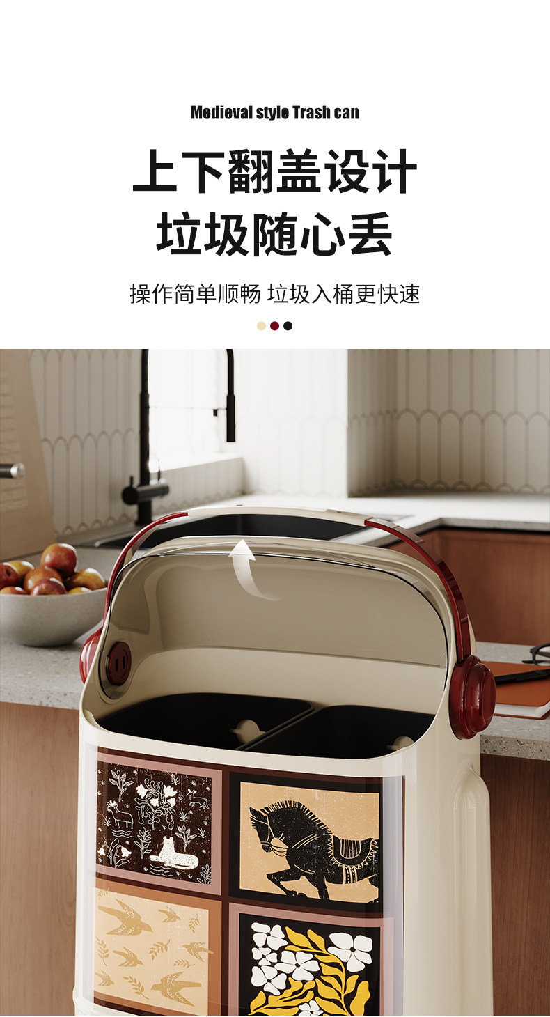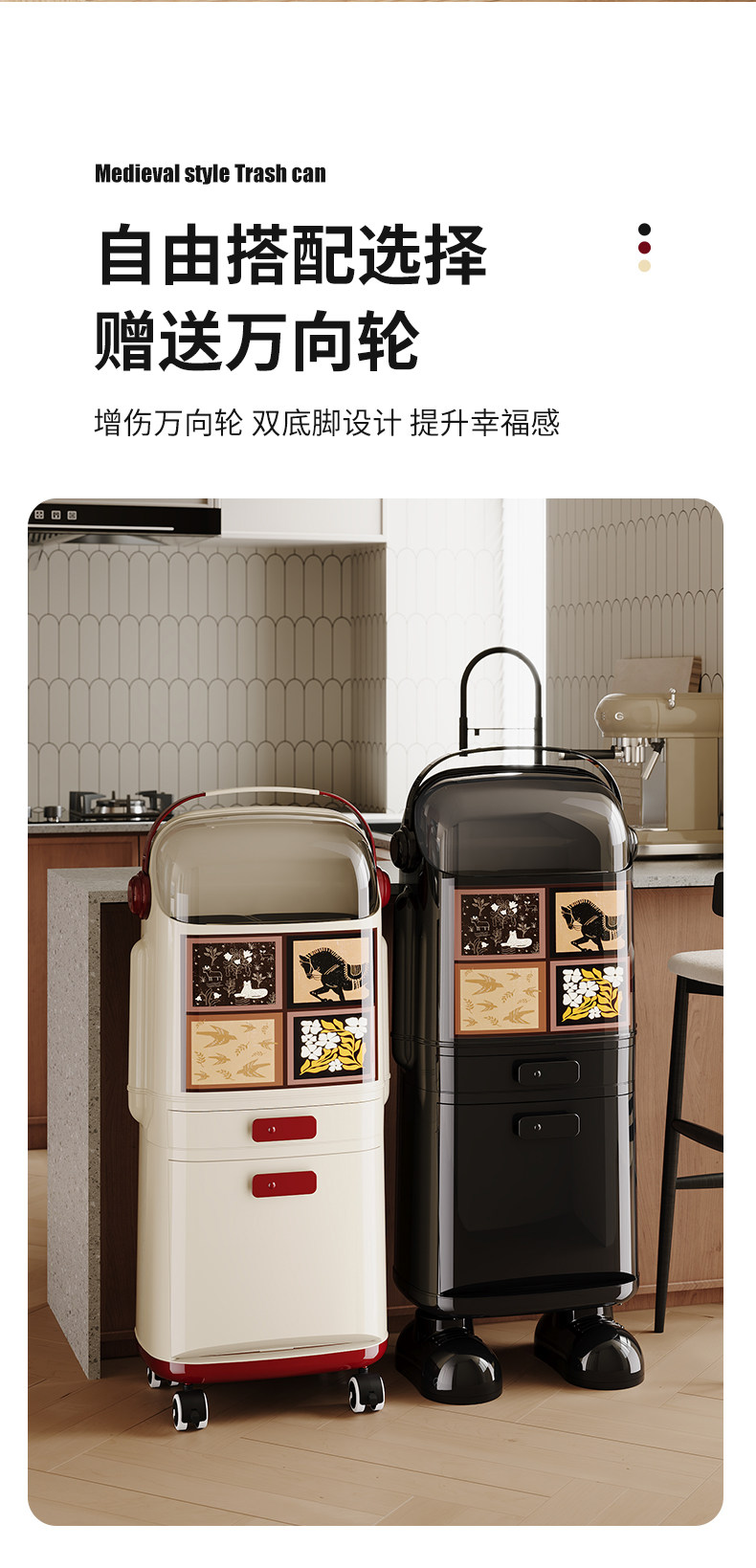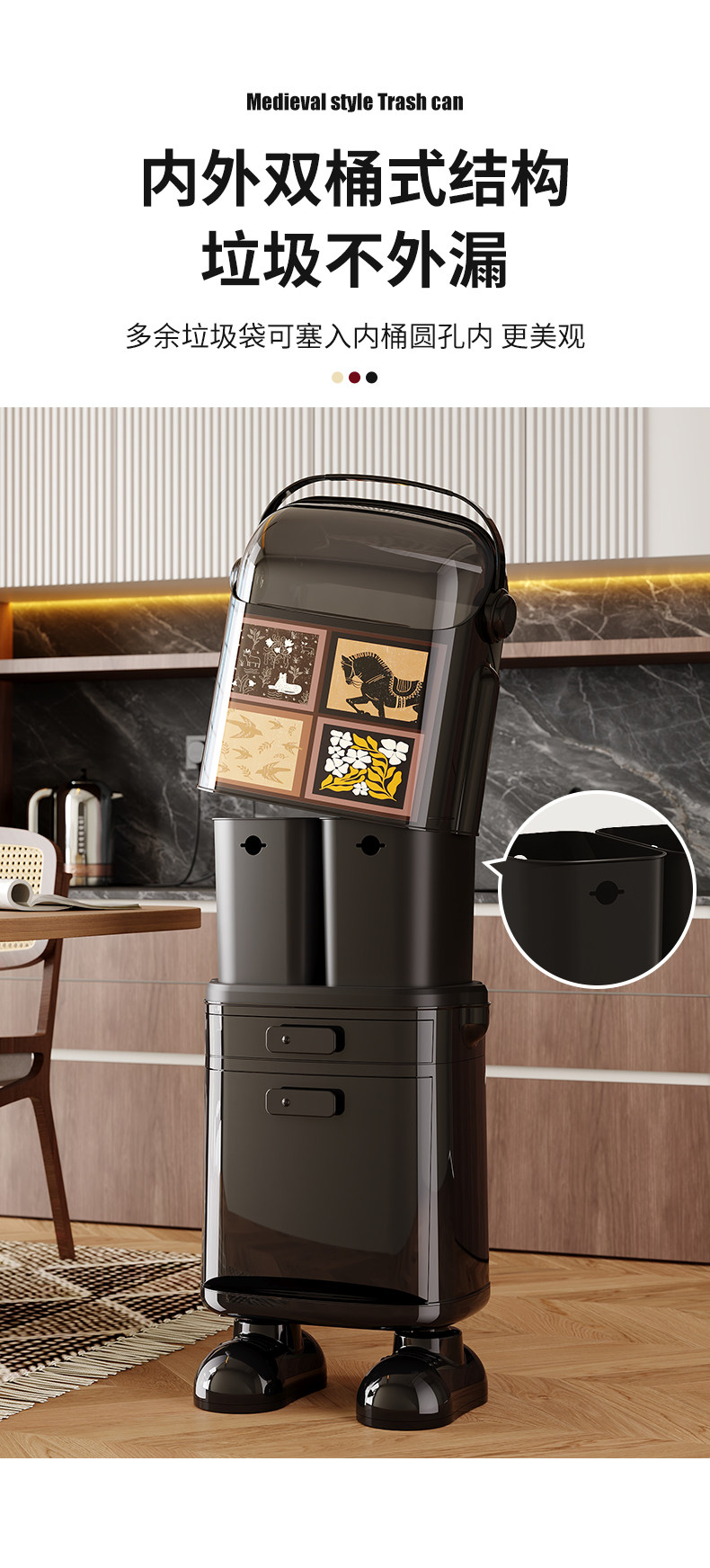 Large Kitchen Trash Can for Home Use with Lid, Double-Layer Integrated, Odor-Proof, Double-Layer Separation for Dry and Wet Waste, Vintage Style
