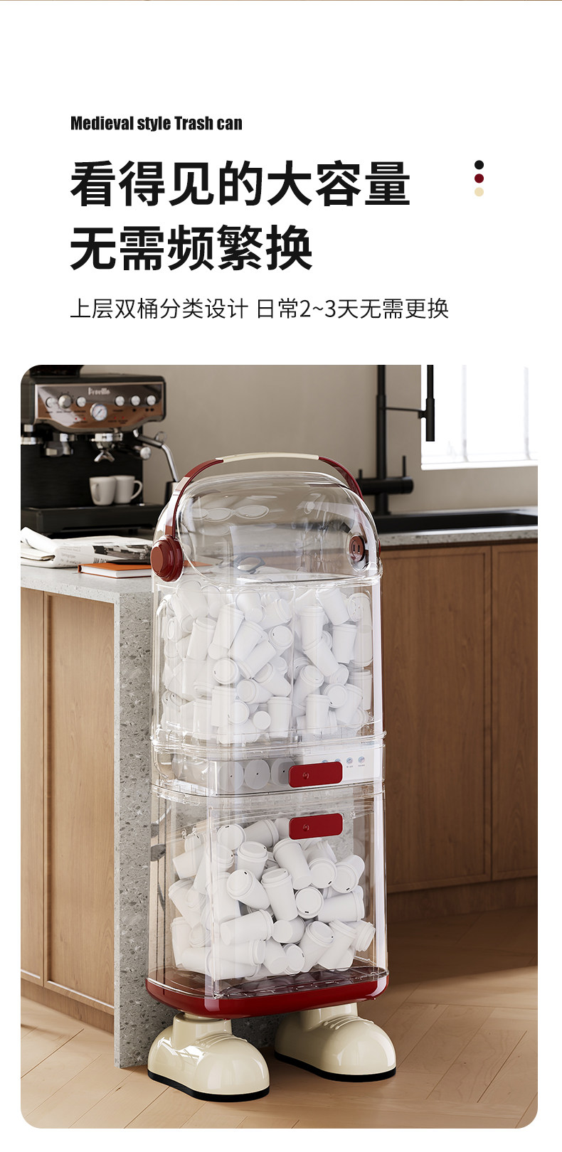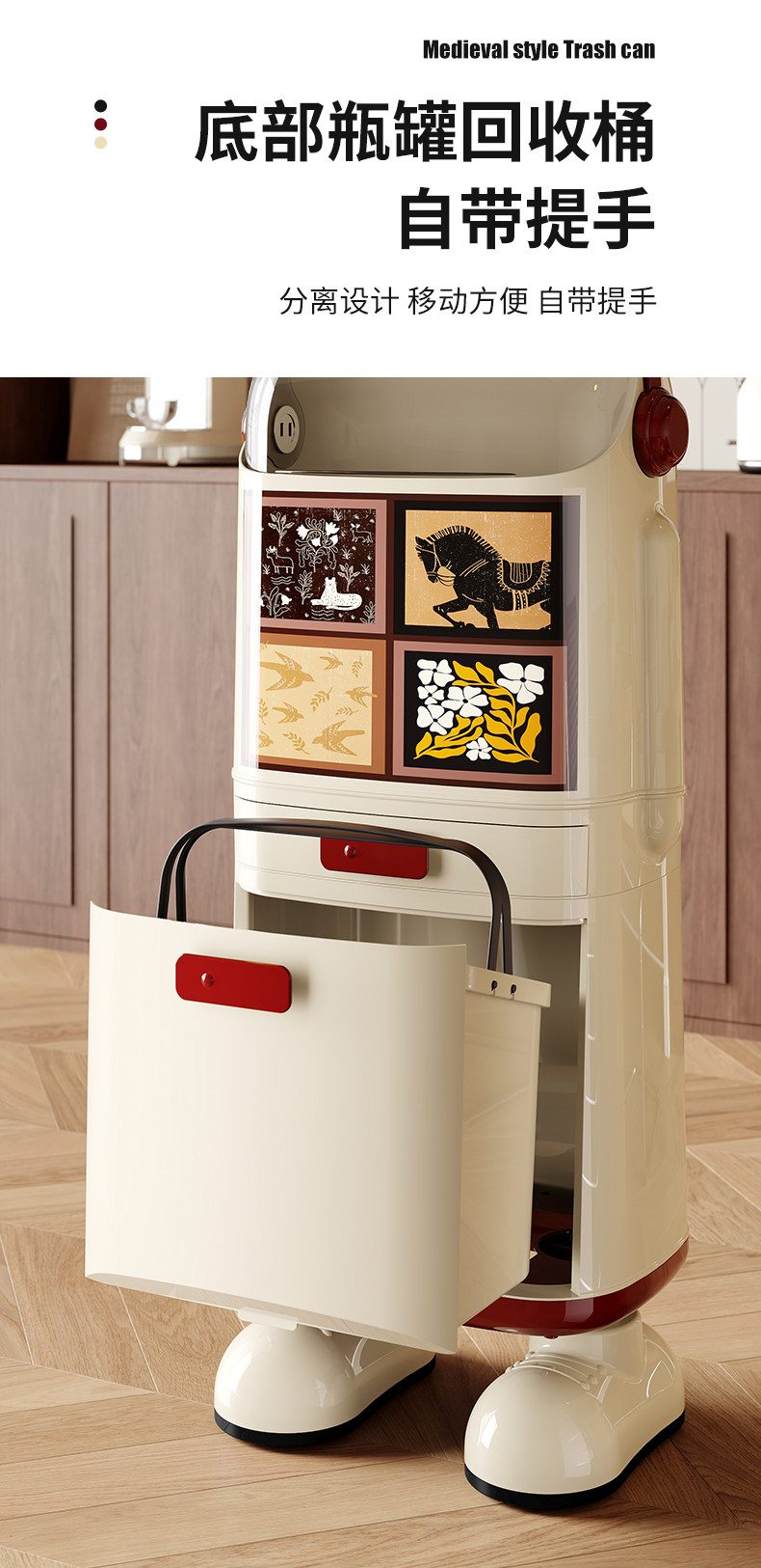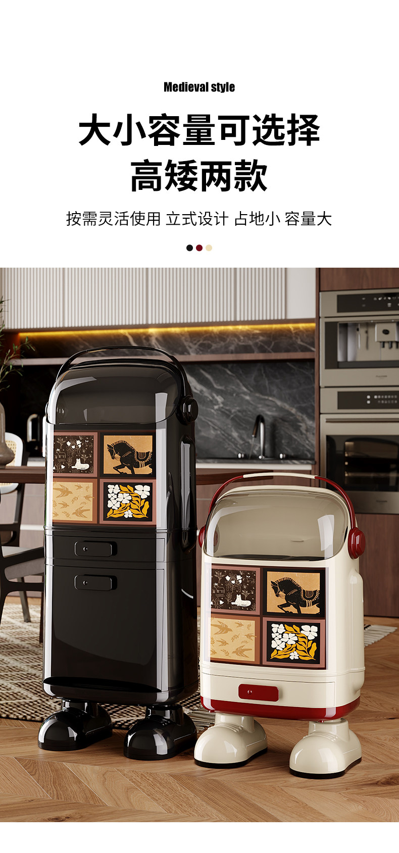 Large Kitchen Trash Can for Home Use with Lid, Double-Layer Integrated, Odor-Proof, Double-Layer Separation for Dry and Wet Waste, Vintage Style