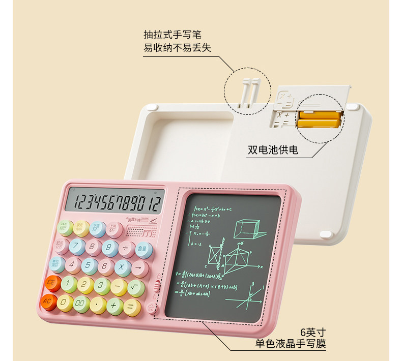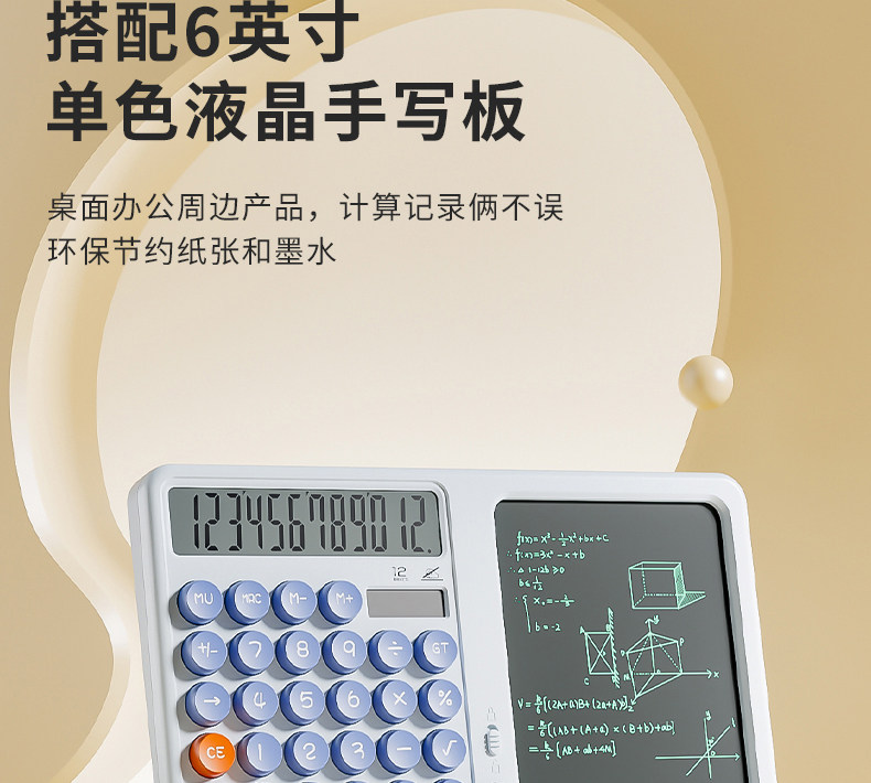 Lcd Handwriting Board Calculator with Solar Dual Power Supply, Office Accounting and Financial Computer, Multifunctional Writing Board for Primary and Secondary School Students, Special Writing Board for Drafting and Accounting, Handwriting Two-In-One Calculator