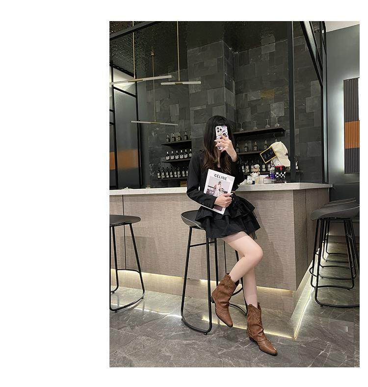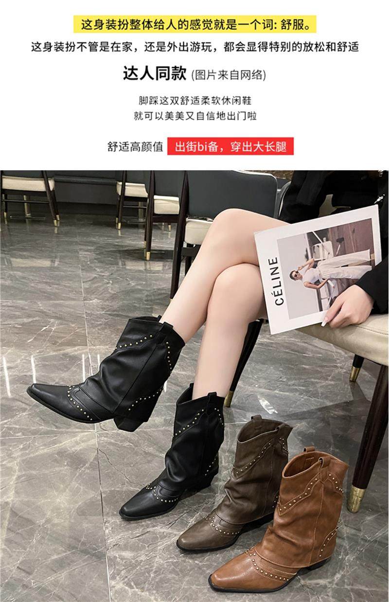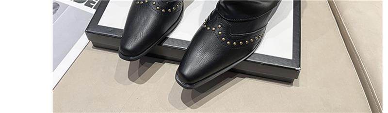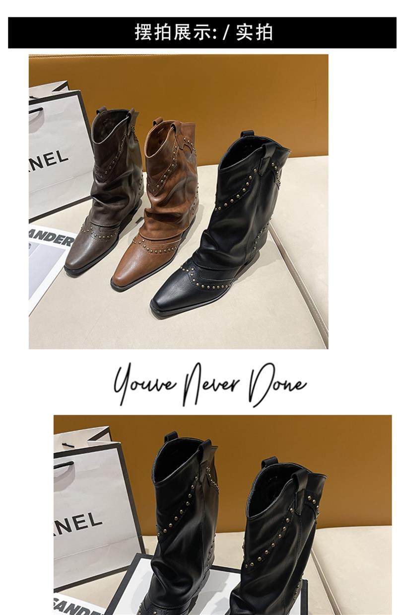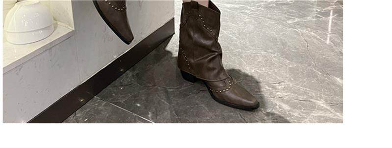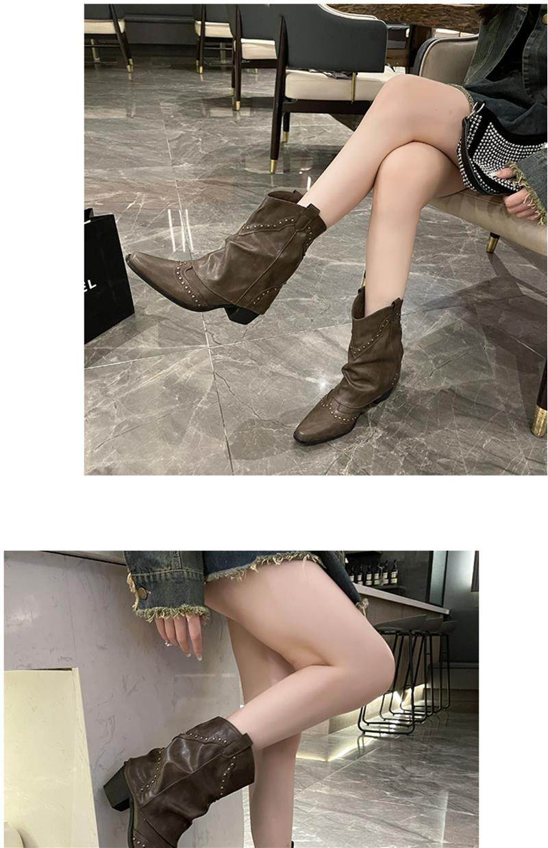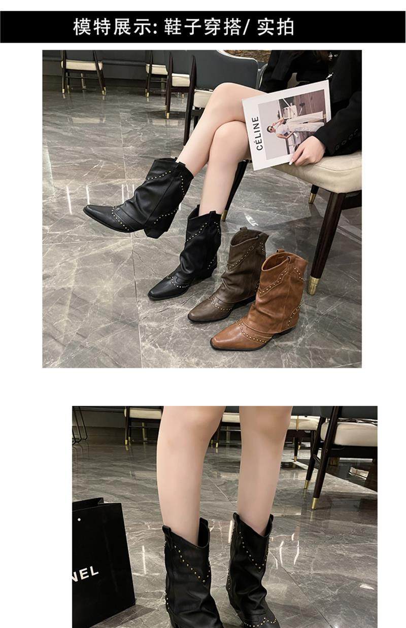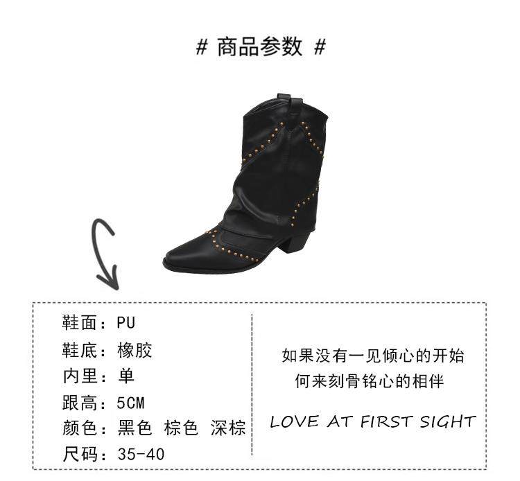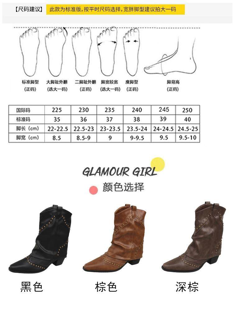 Western Cowboy Boots with Chunky Heels for Women, 2026 New Autumn V-Cut Riding Boots, Pointed Toe Studded Retro Bootcut Boots