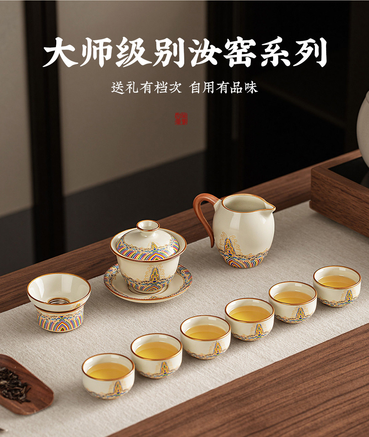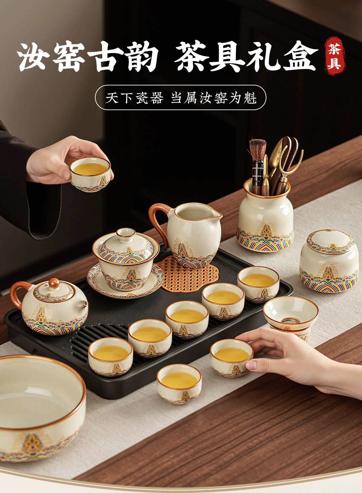 Baoxuan Ru Kiln Kung Fu Tea Set, a High-End Gift Box for Home and Office Use, Specially Designed for Making and Drinking Tea, Perfect as a Housewarming Gift