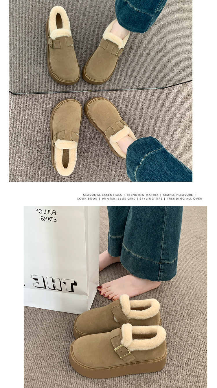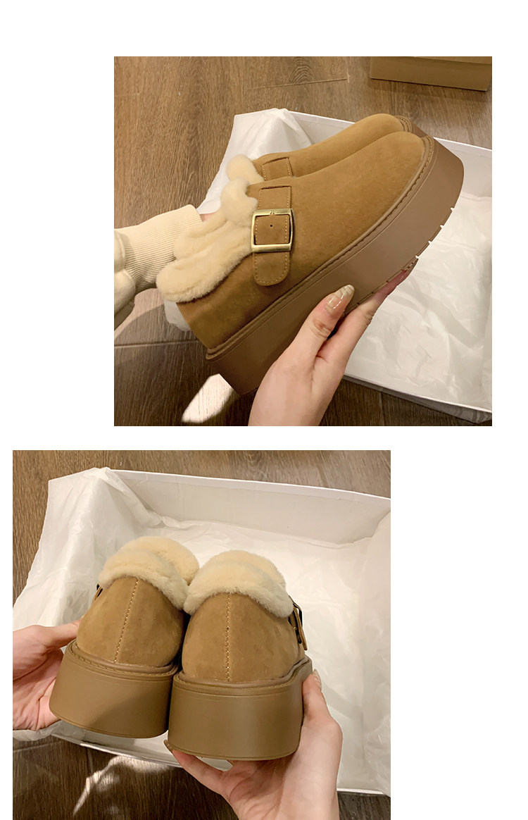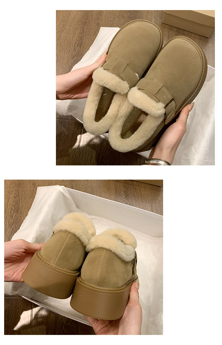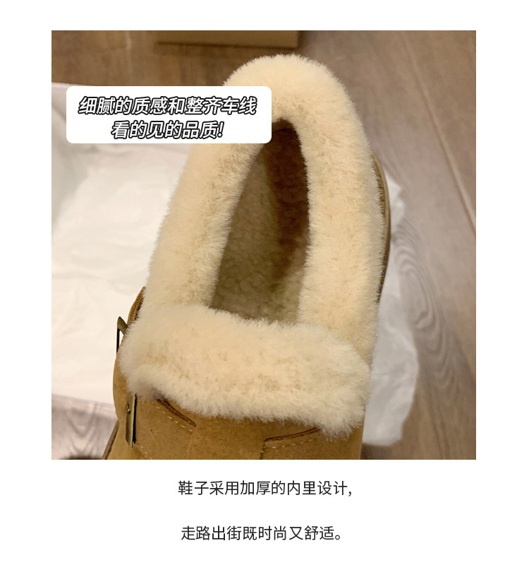 Thick-Soled Fleece-Lined Birkenstock-Style Snow Boots for Women, 2025 New Autumn and Winter Outdoor Furry Shoes, Warm Loafers, Cotton Shoes