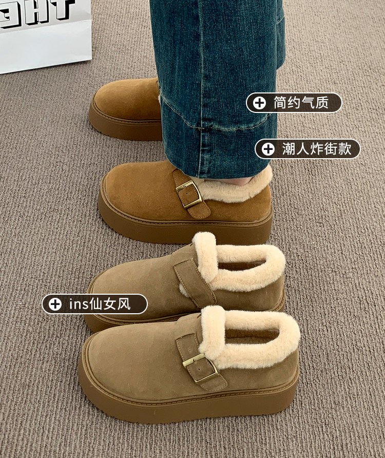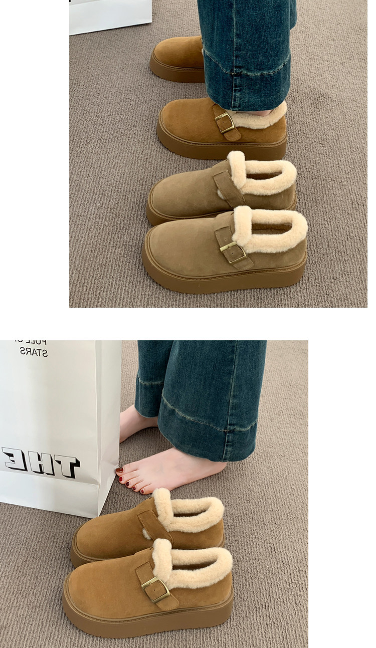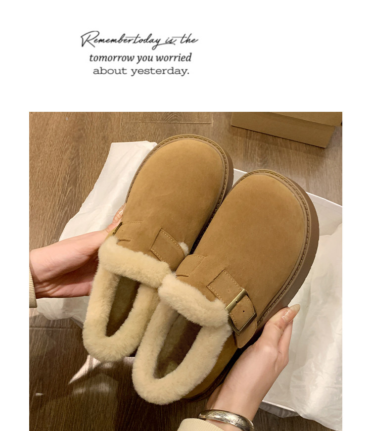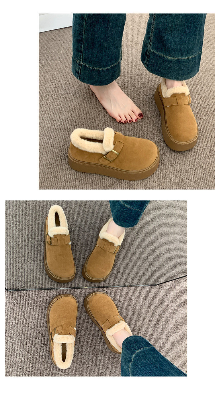 Thick-Soled Fleece-Lined Birkenstock-Style Snow Boots for Women, 2025 New Autumn and Winter Outdoor Furry Shoes, Warm Loafers, Cotton Shoes