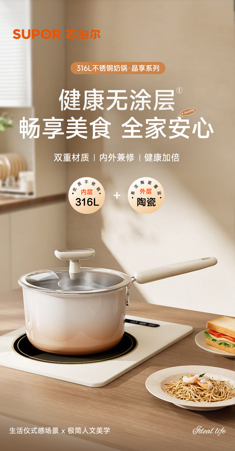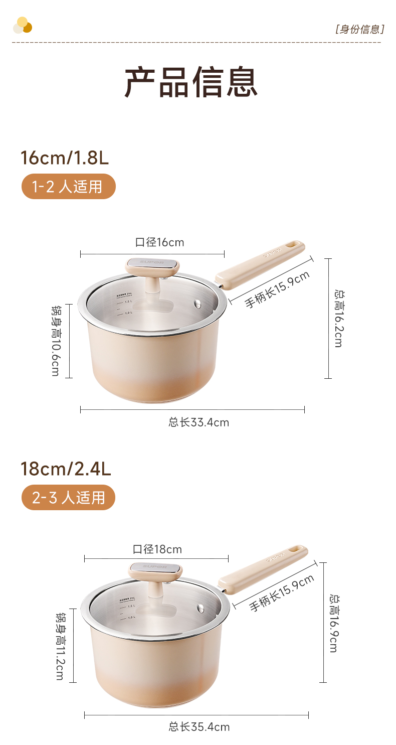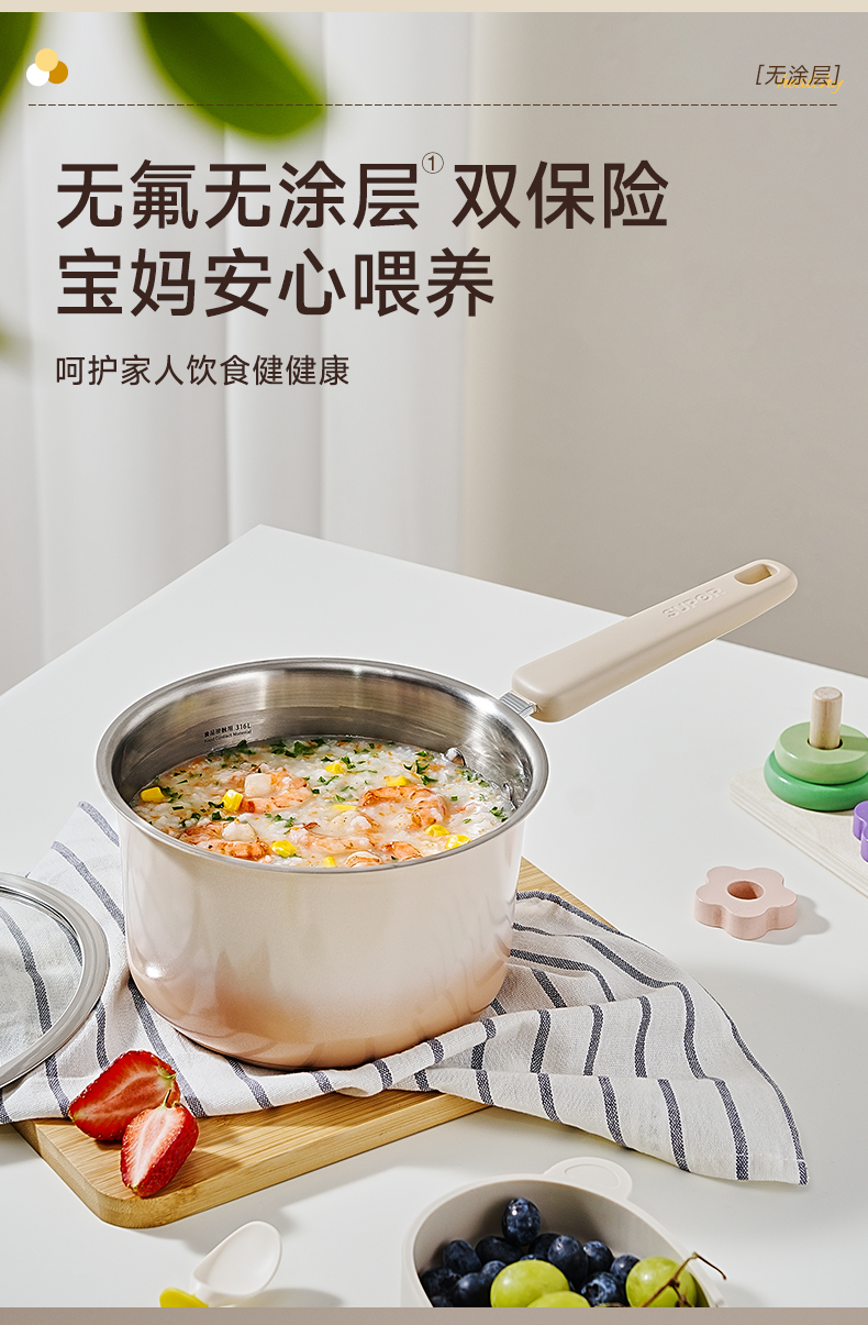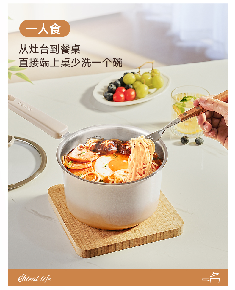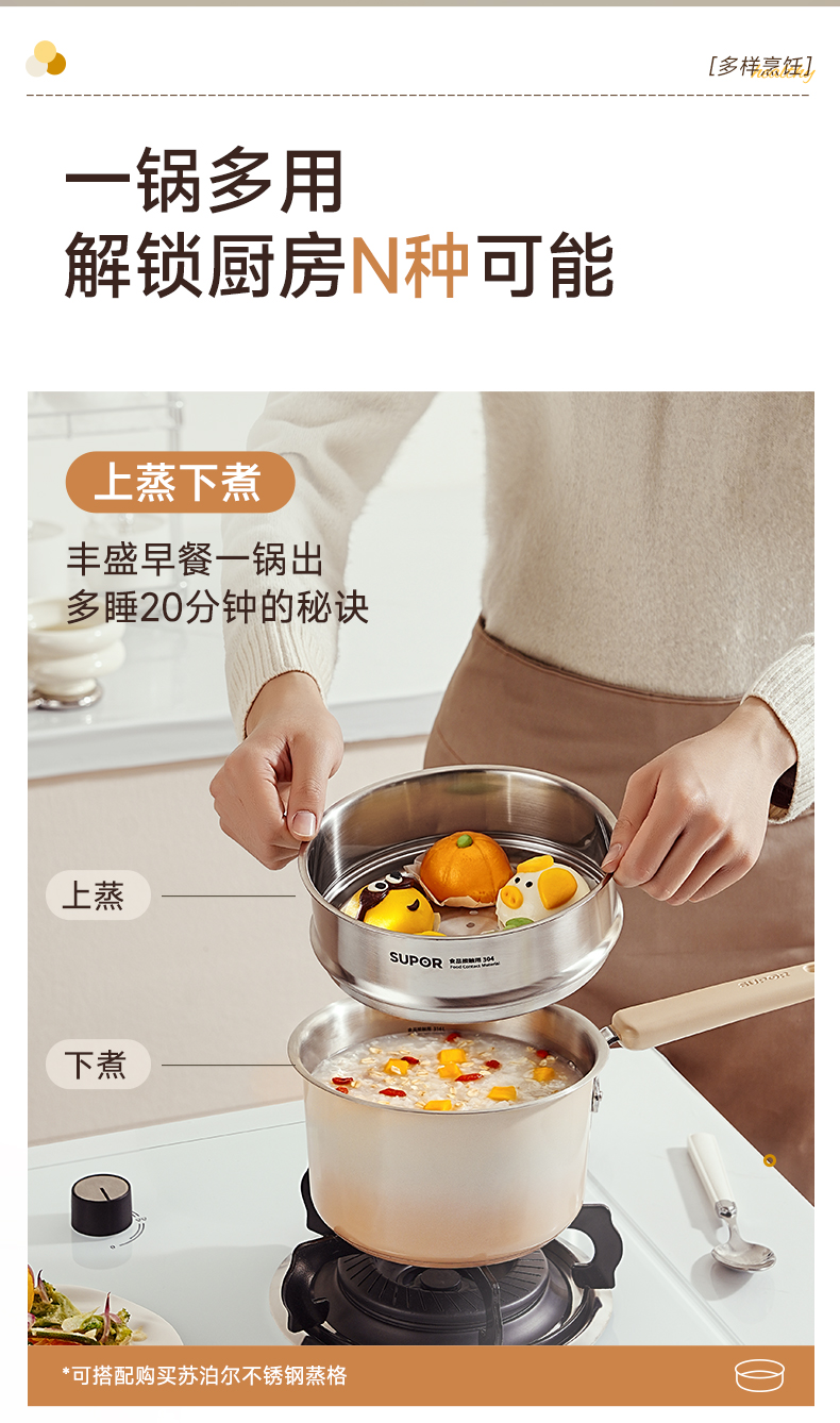 Supor Milk Pot Baby Food Supplement Pot 316L Stainless Steel Ceramic Steaming and Cooking Integrated Instant Noodle Pot for One Person