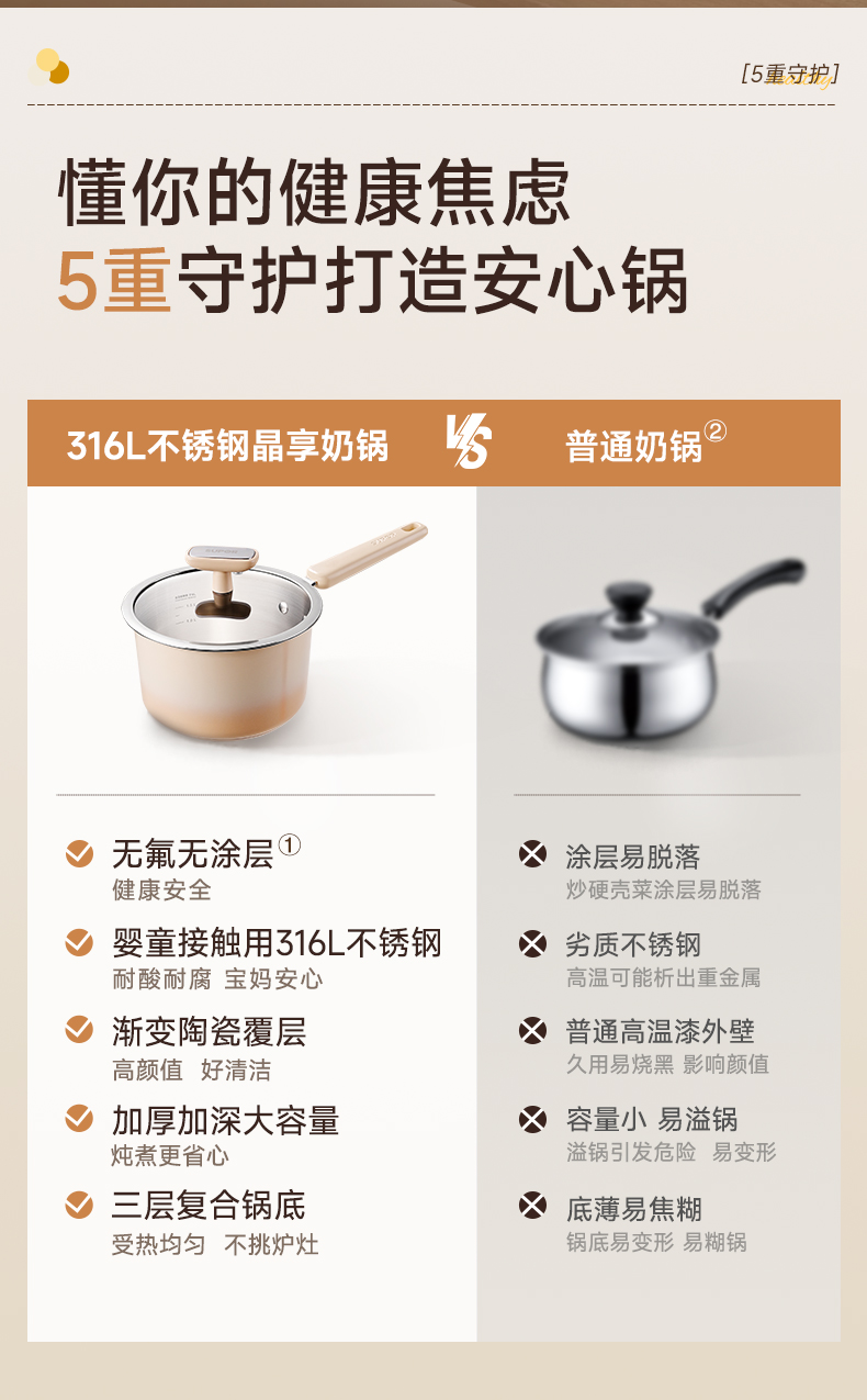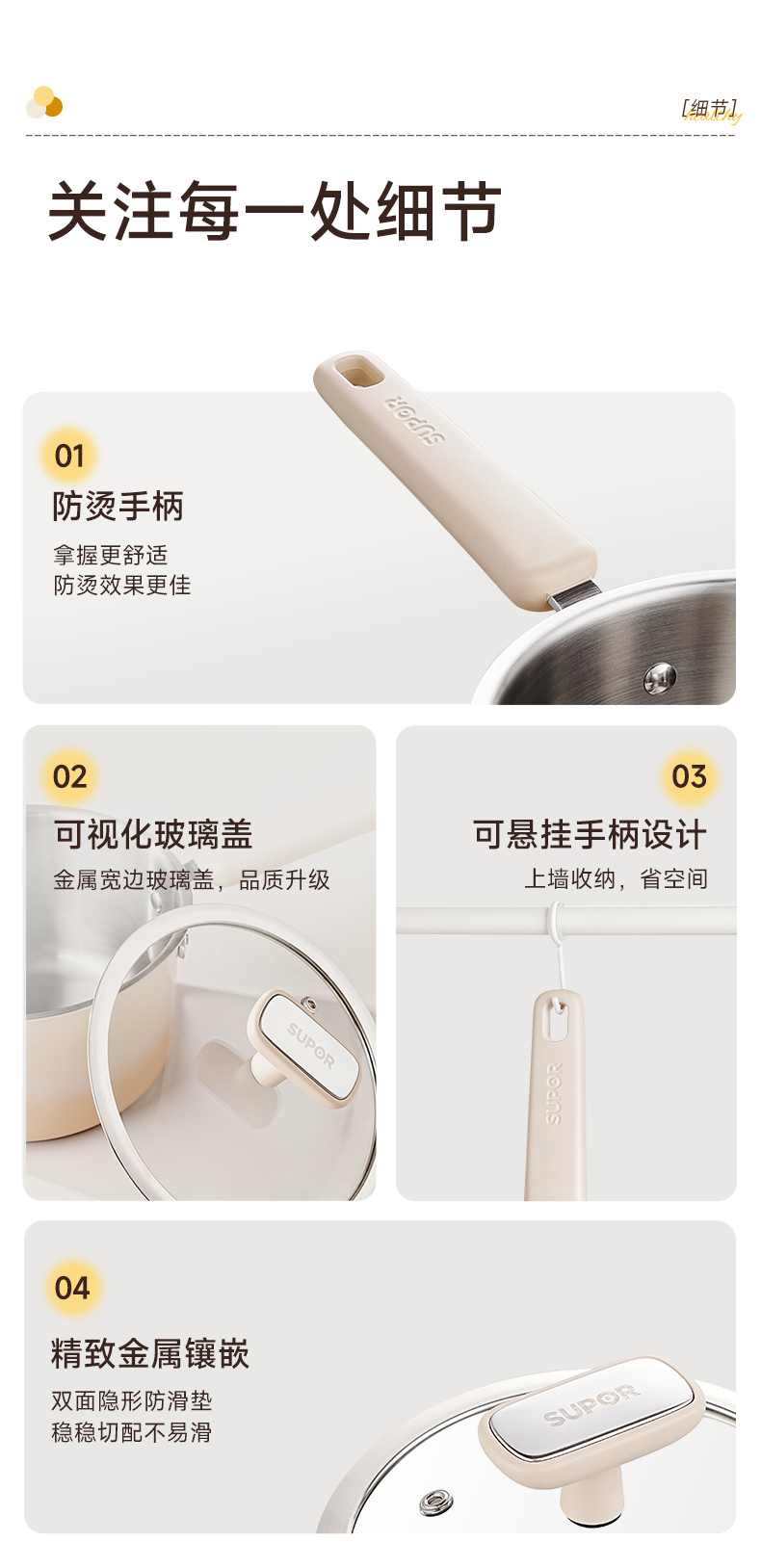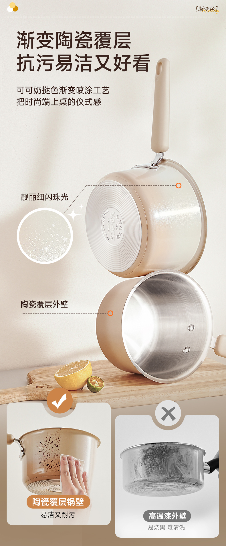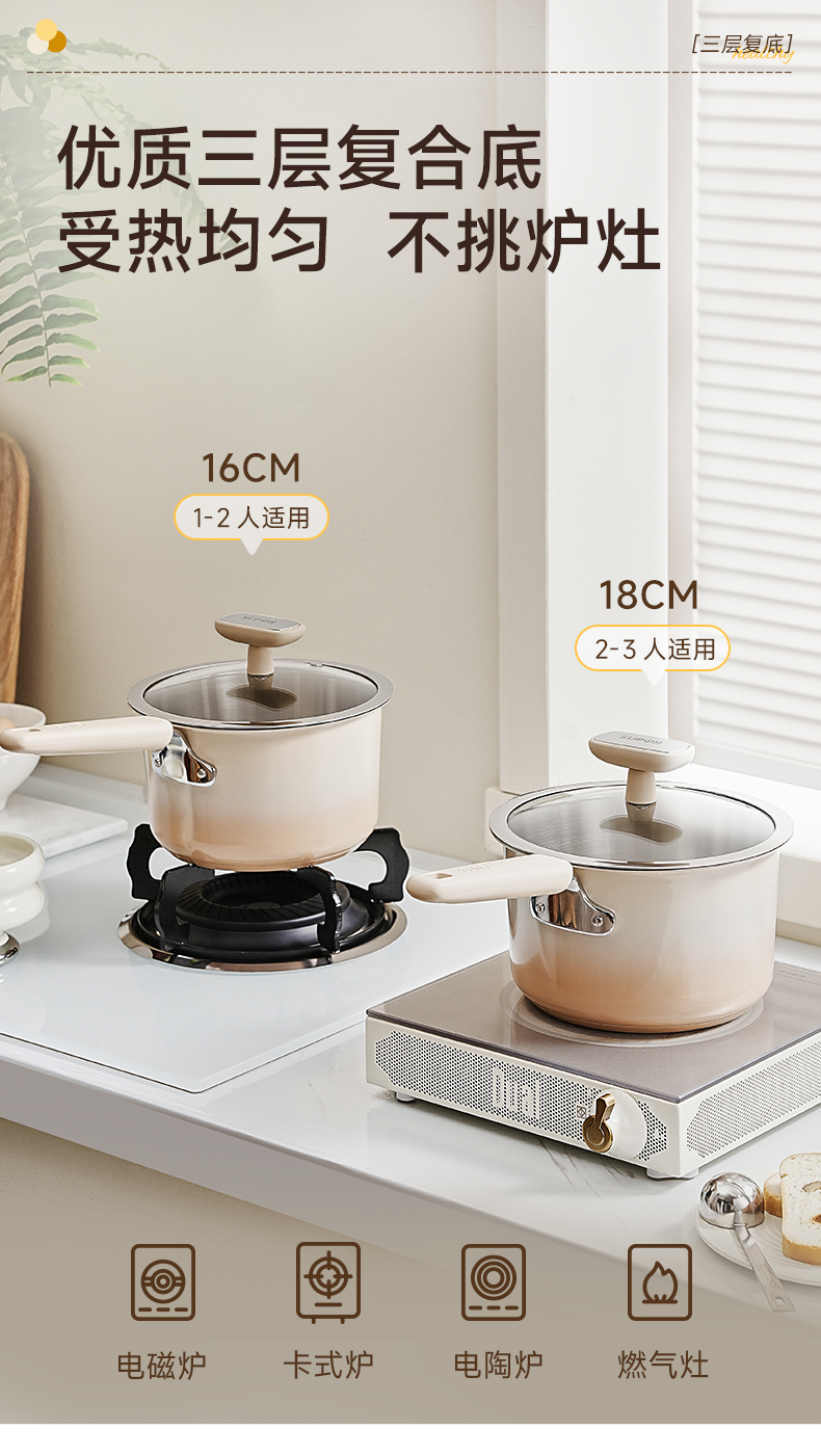 Supor Milk Pot Baby Food Supplement Pot 316L Stainless Steel Ceramic Steaming and Cooking Integrated Instant Noodle Pot for One Person