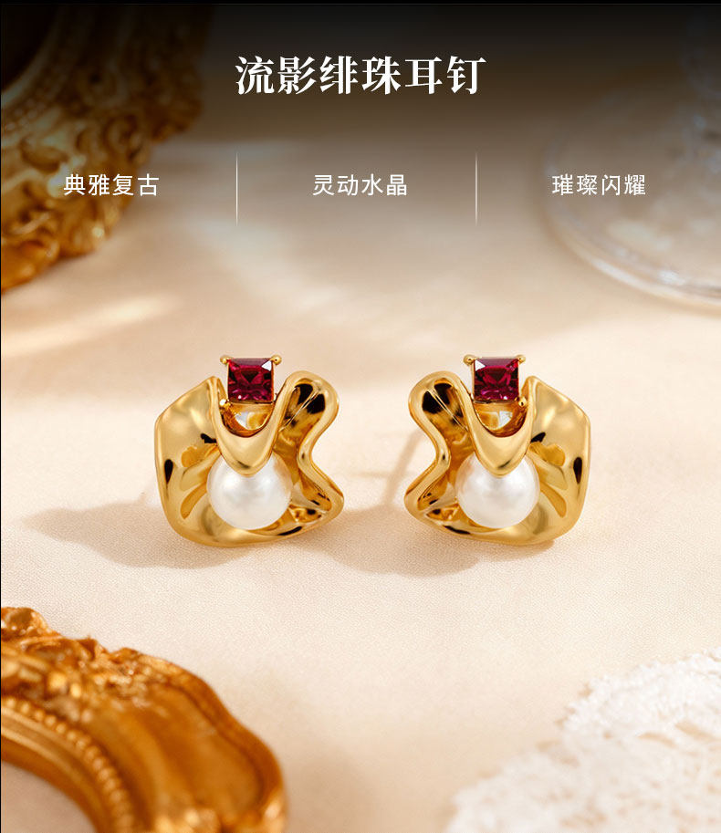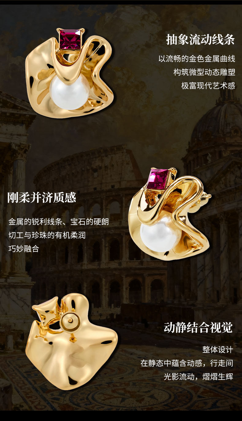 Eternelle French Eternal Flowing Shadow Bead Earrings, Small and Unique Design Earrings for Women, Simple and Fashionable Earrings