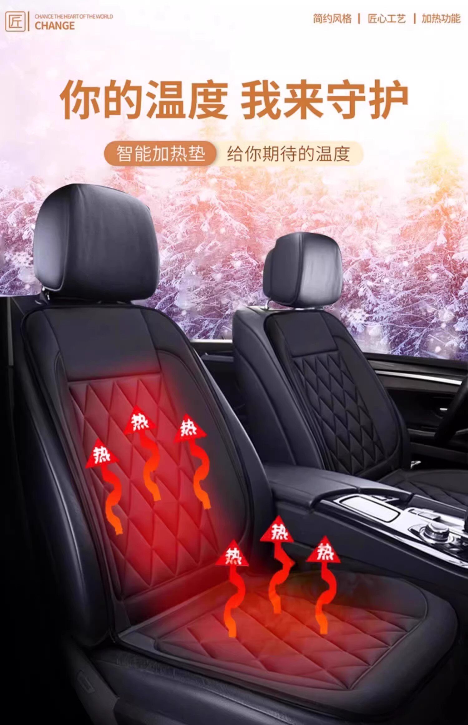Car Heated Seat Cushion for Winter, Single or Double Seat, Integrated Lumbar Support, 12V Heating, Plush Seat Cushion Modification