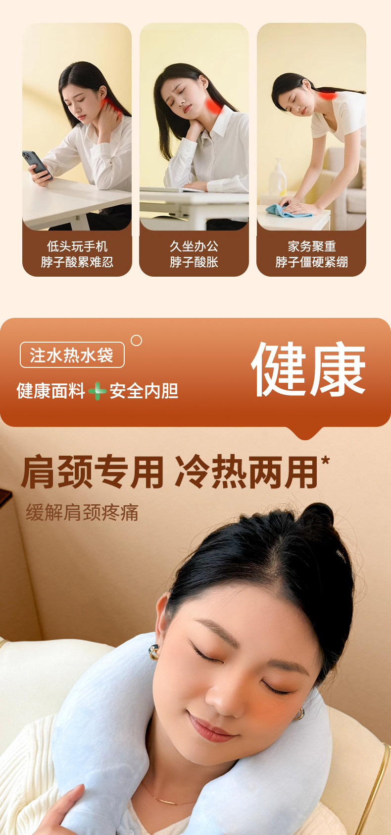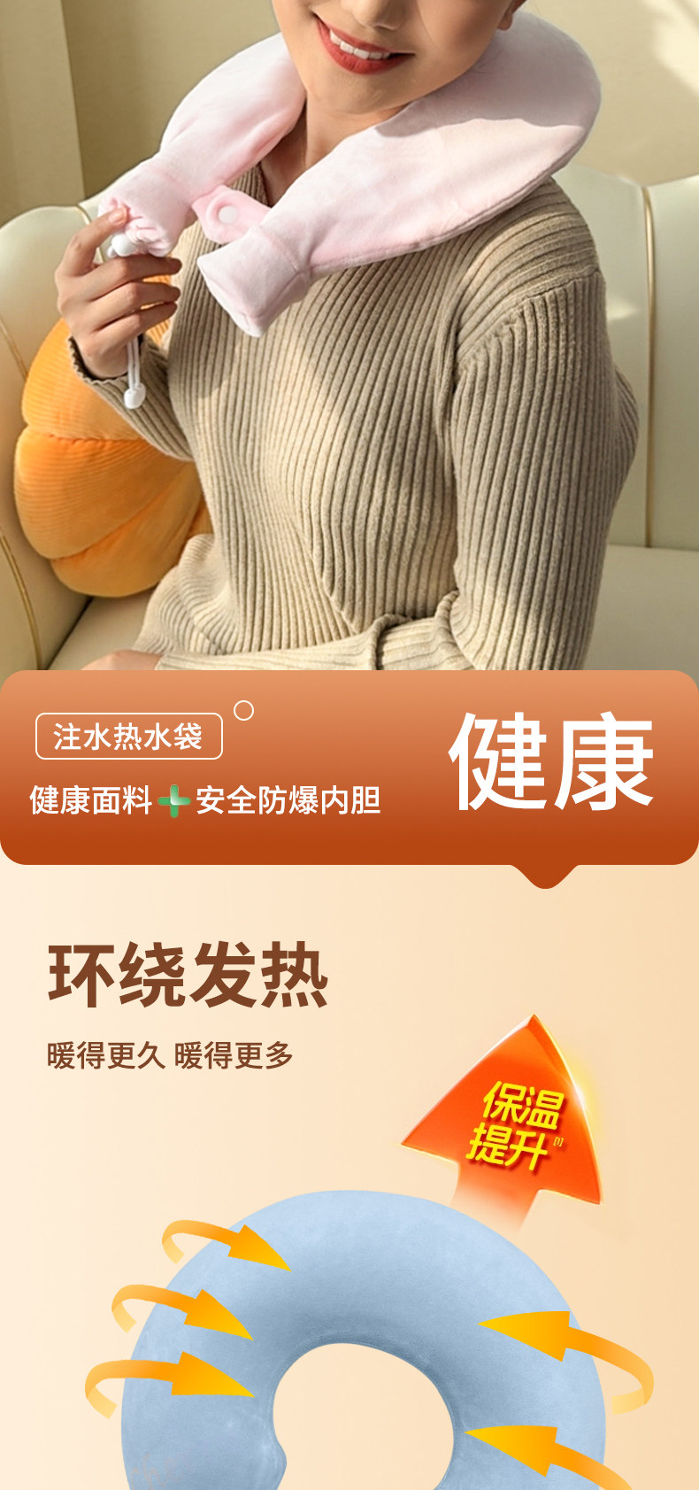 U-Shaped Hot Water Bottle for Cervical Heat Therapy, Water-Filled Hot Water Bag, Special Shoulder and Neck Protector, Safe Leak-Proof Circular Heat Therapy Bag