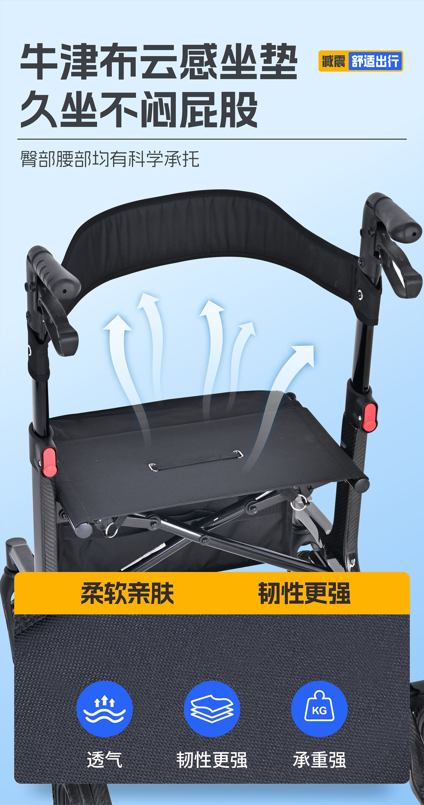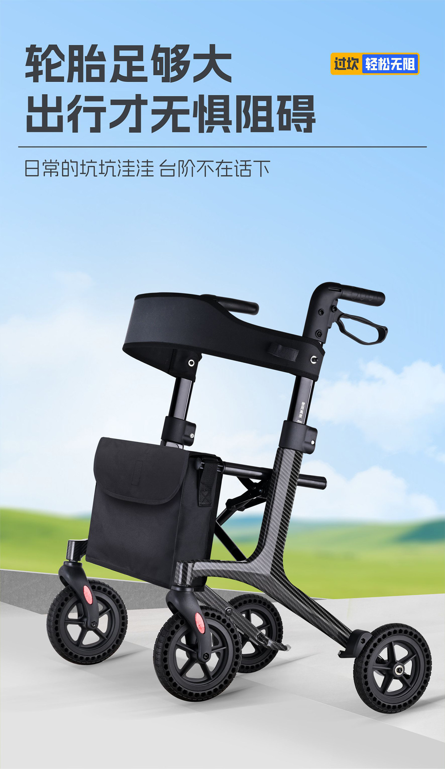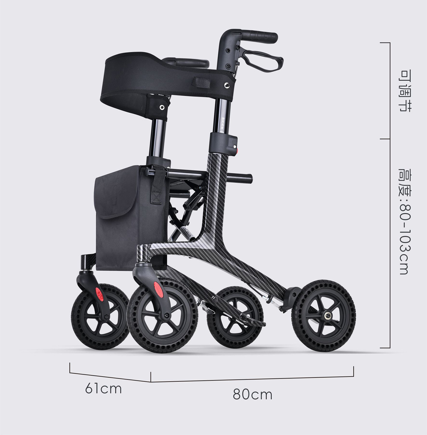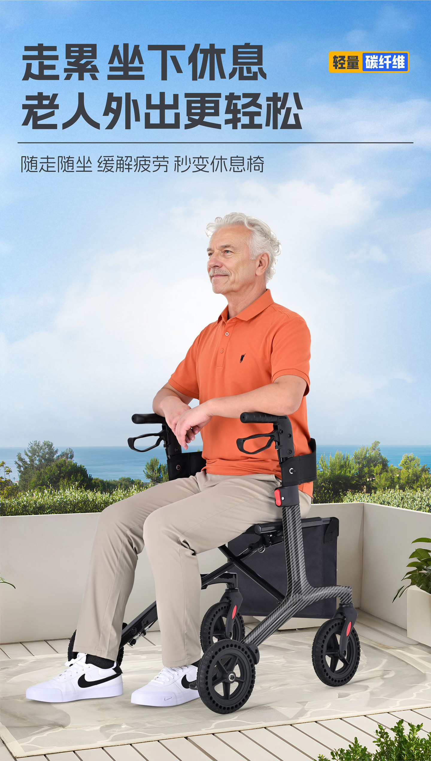 German Carbon Fiber Walking Aid for the Elderly, Mobility Aid for Seniors, Pushable and Sitable Walker
