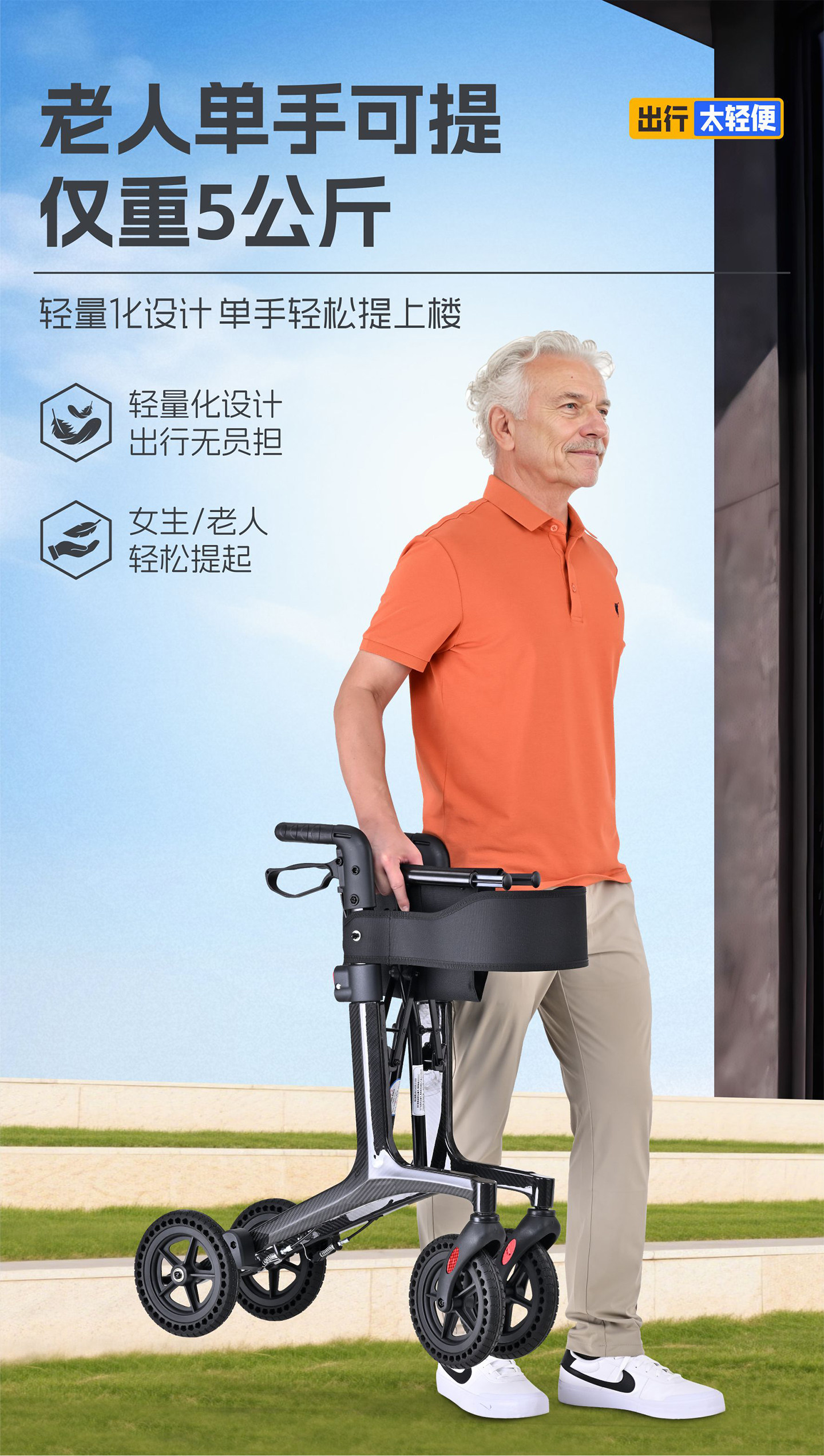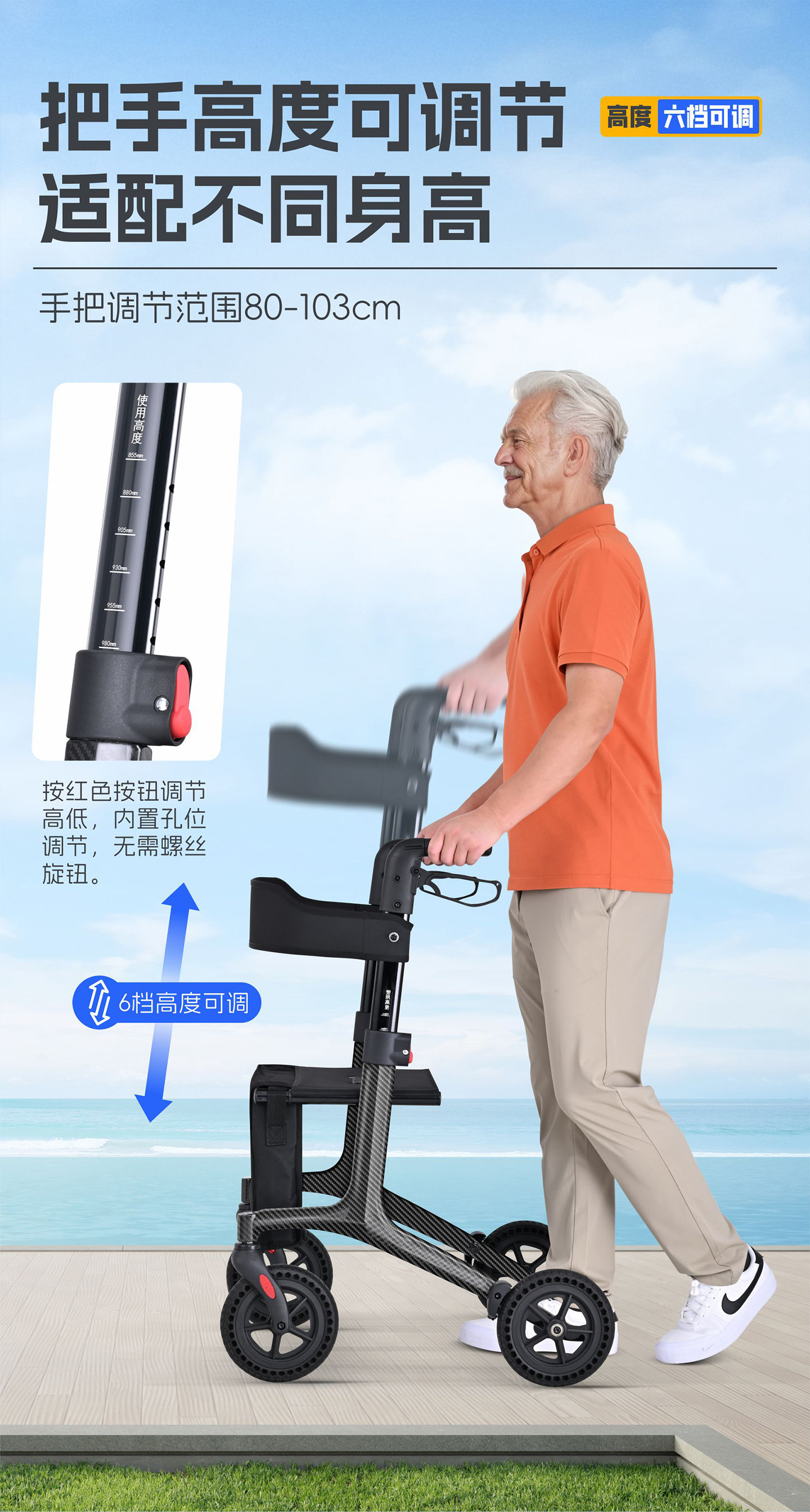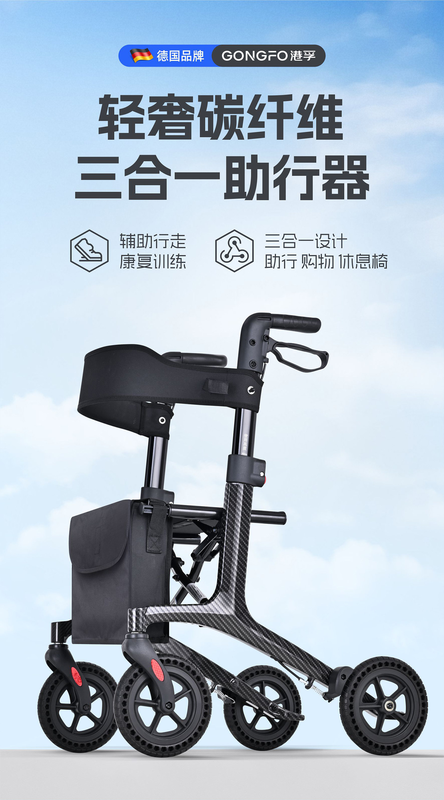 German Carbon Fiber Walking Aid for the Elderly, Mobility Aid for Seniors, Pushable and Sitable Walker