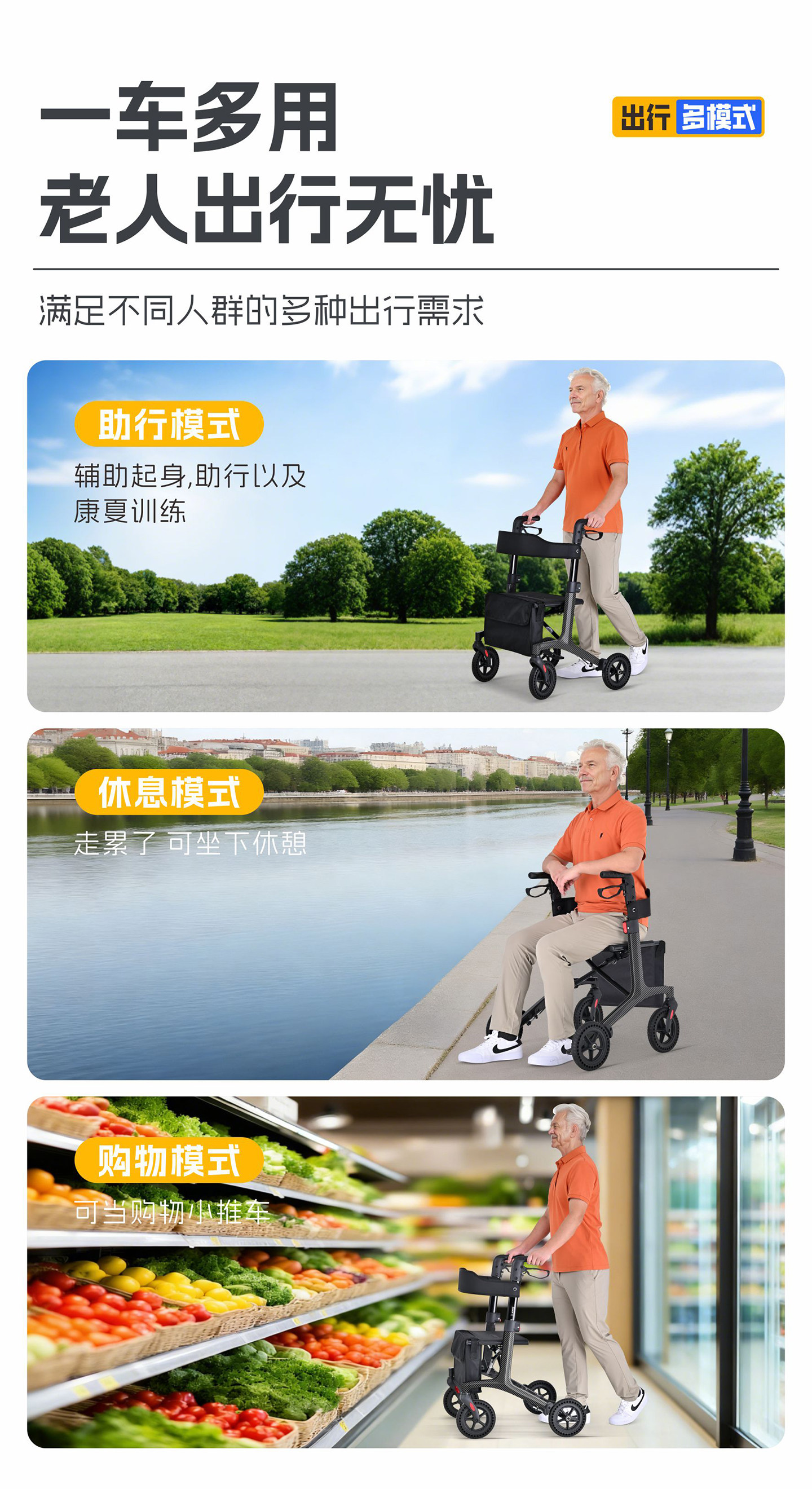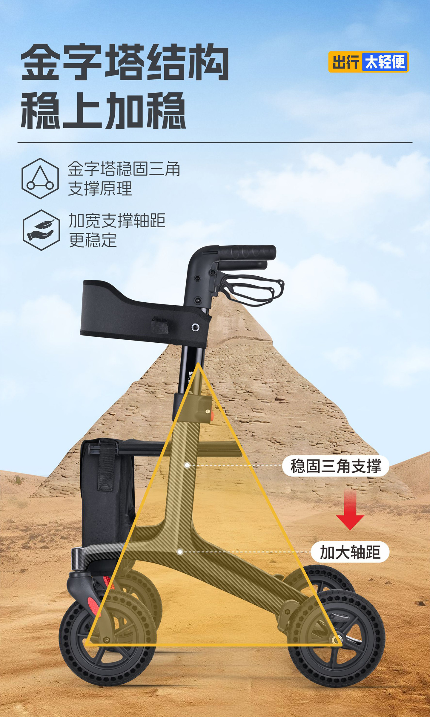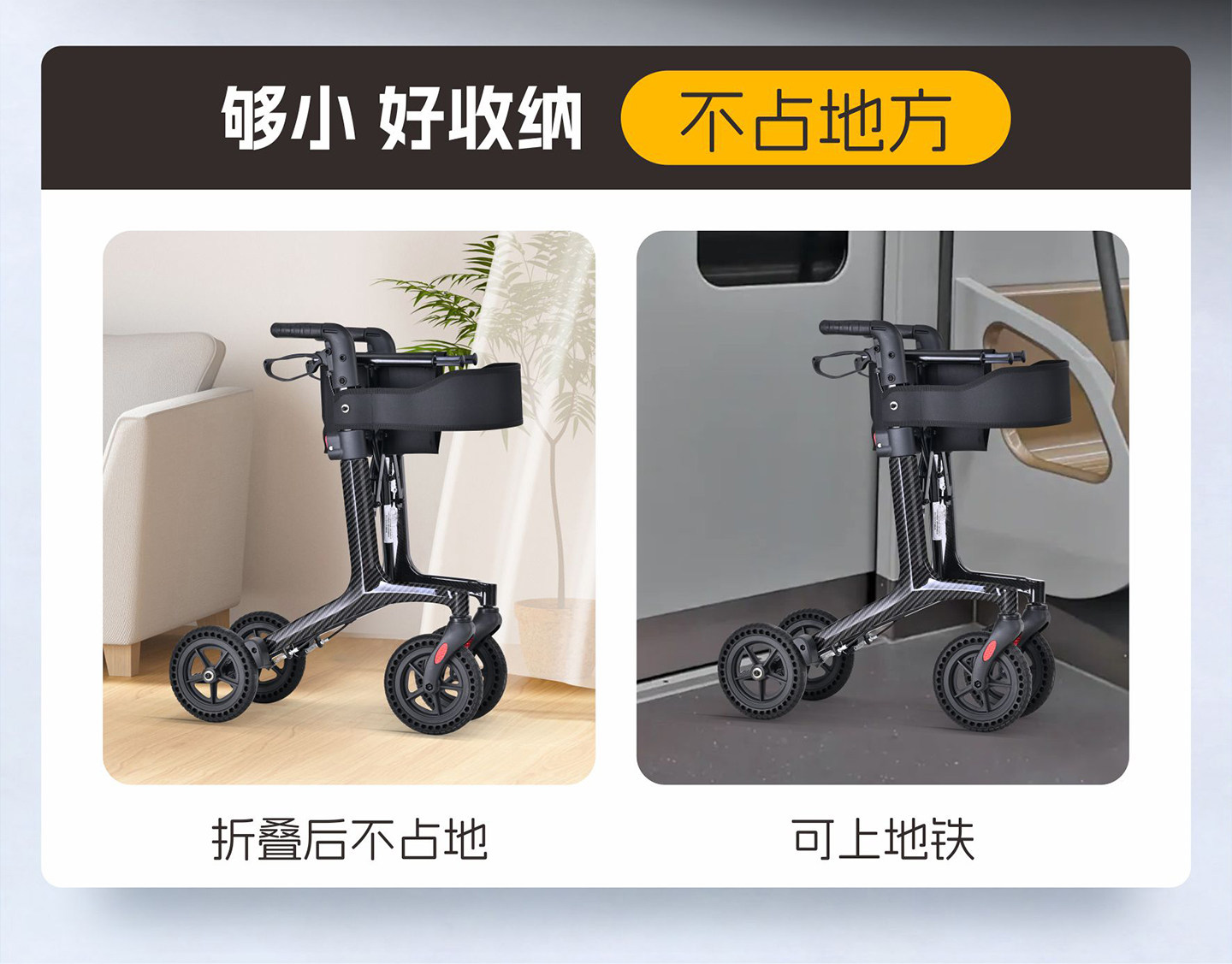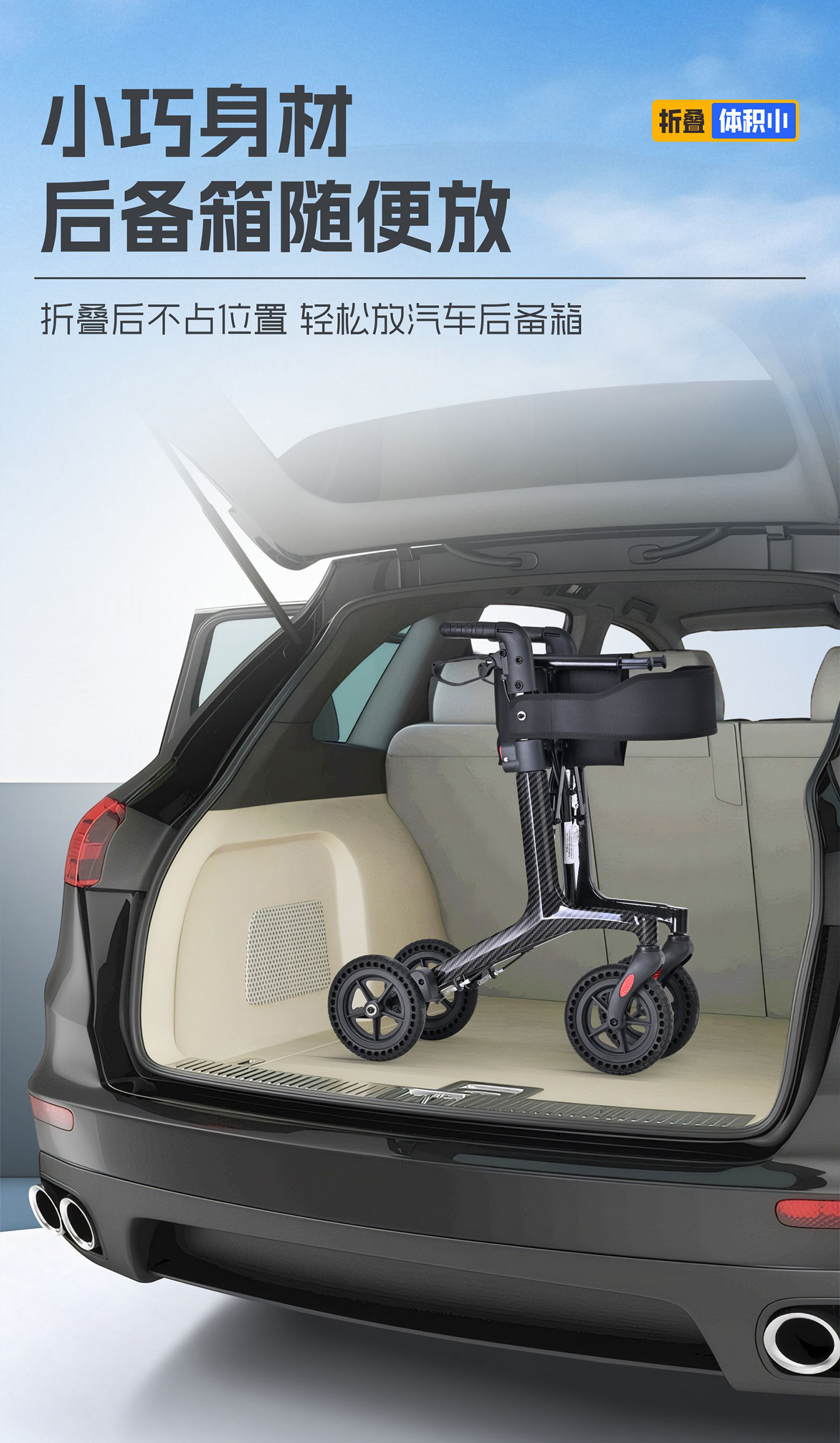 German Carbon Fiber Walking Aid for the Elderly, Mobility Aid for Seniors, Pushable and Sitable Walker