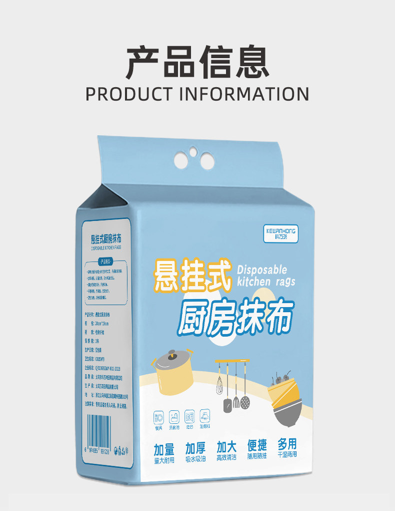 Kewan Hong Lazy Rag Kitchen Hanging Type Household Cleaning Disposable Dishwashing Cloth Special Paper Towel for Both Dry and Wet Use