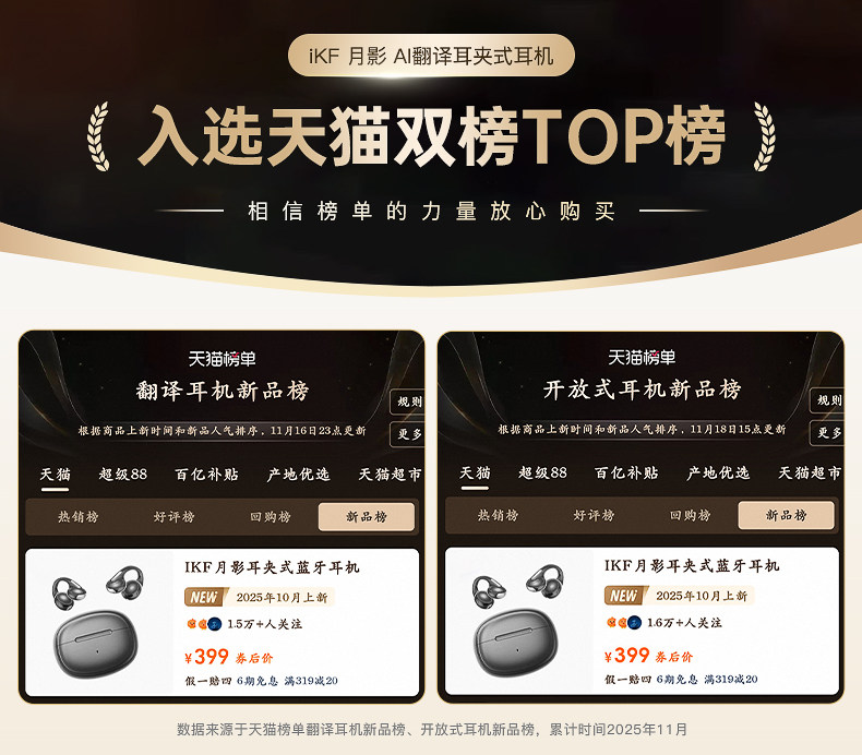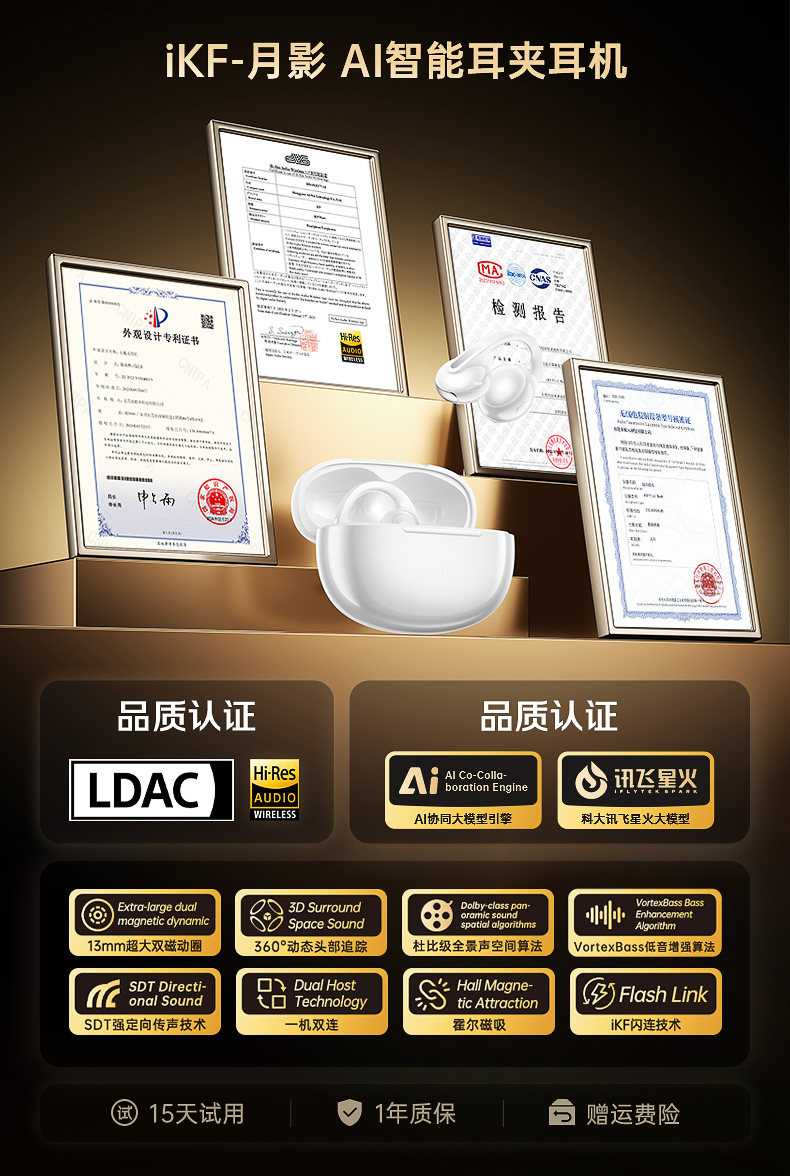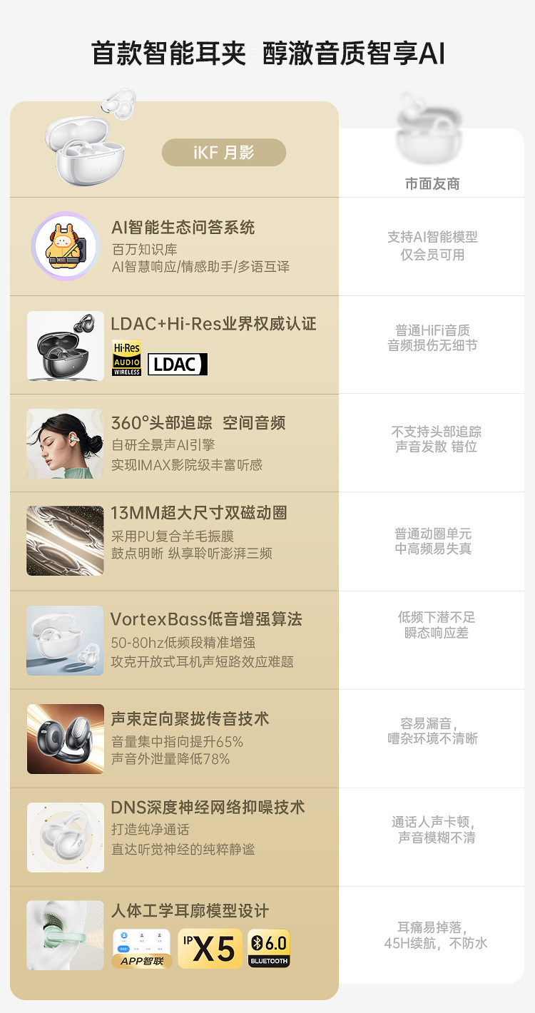 Ikf Moon Shadow Ear Clip Type Ai Translation Bluetooth Headphones Ldac Open Air Conduction 2026 New Model for Sports and Running