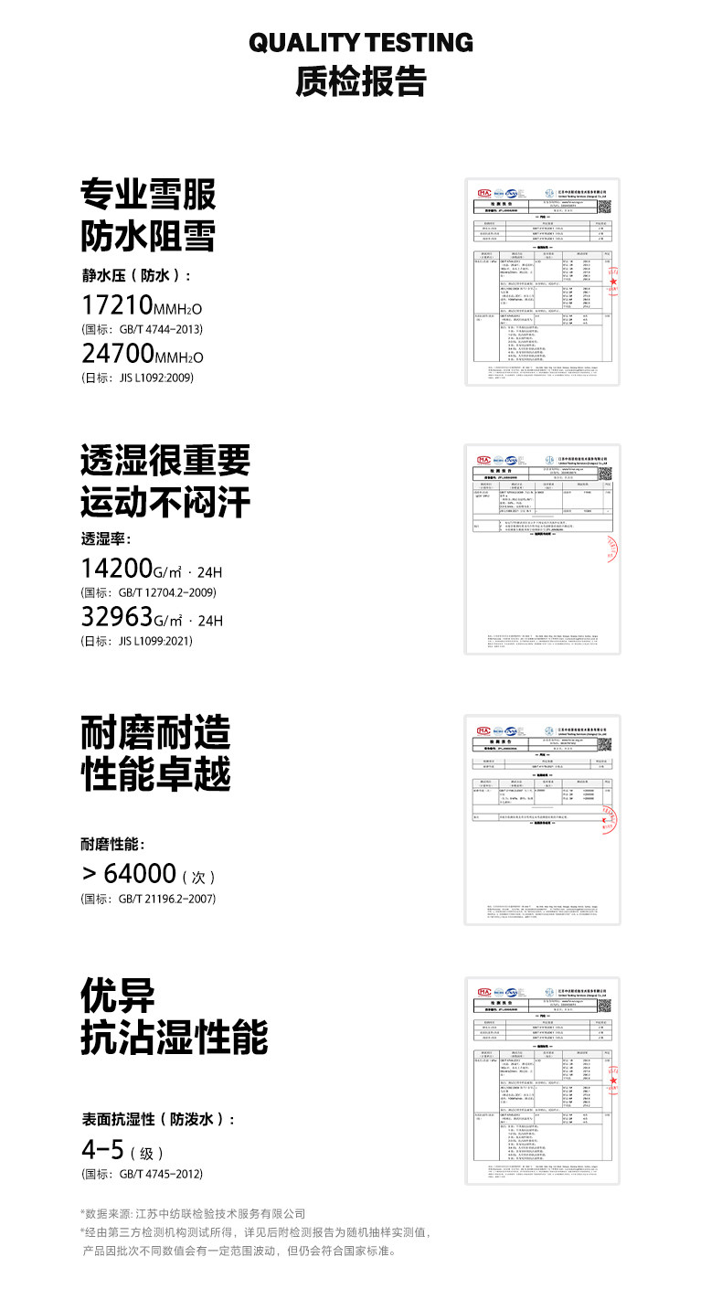 | Waterproof | Hydrostatic Pressure> 20000Mmh₂O,Surface Moisture Resistance: ≥4-5 Levels before Washing, ≥3-4 Levels after Washing |