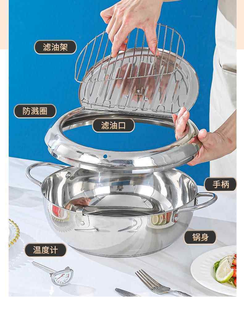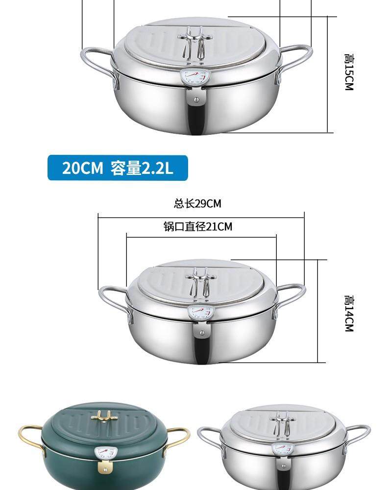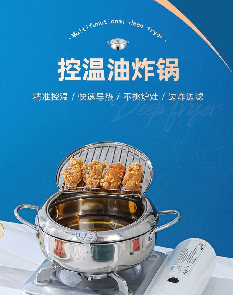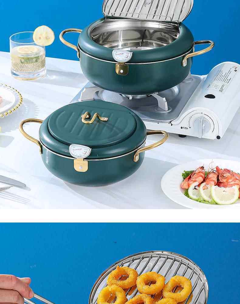Stainless Steel Tempura Frying Pot with Lid and Thermometer for Home Use, Thickened for Frying and Draining Oil While Frying