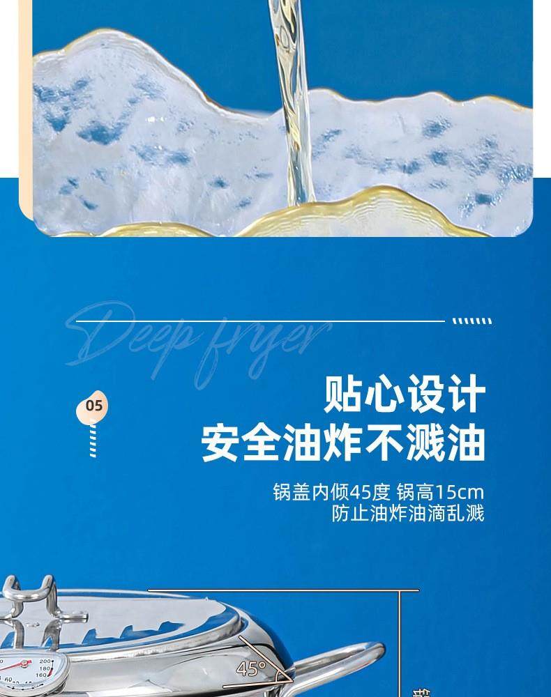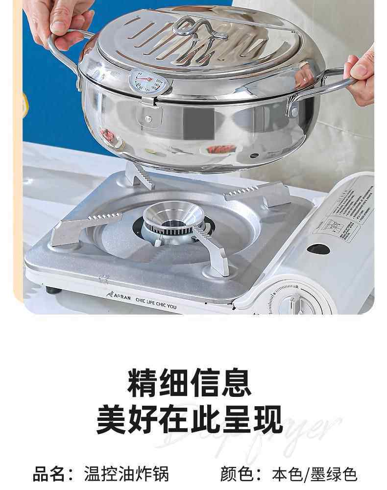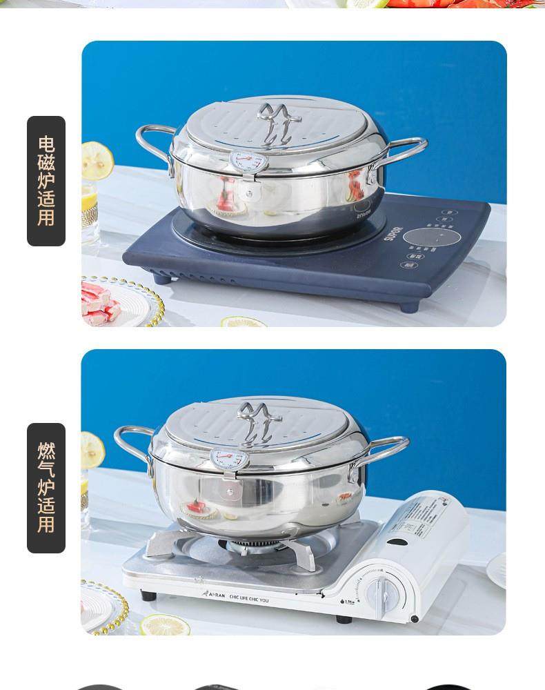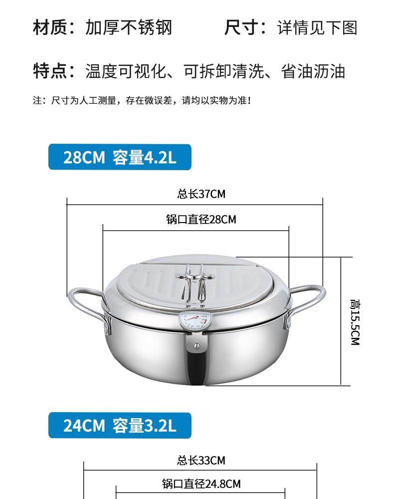 Stainless Steel Tempura Frying Pot with Lid and Thermometer for Home Use, Thickened for Frying and Draining Oil While Frying