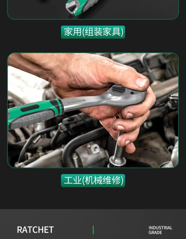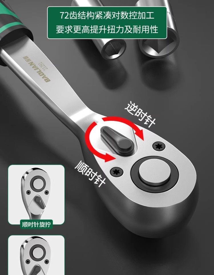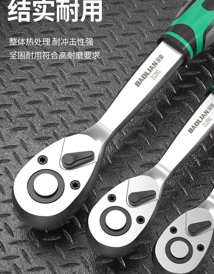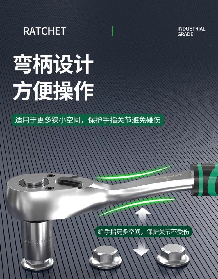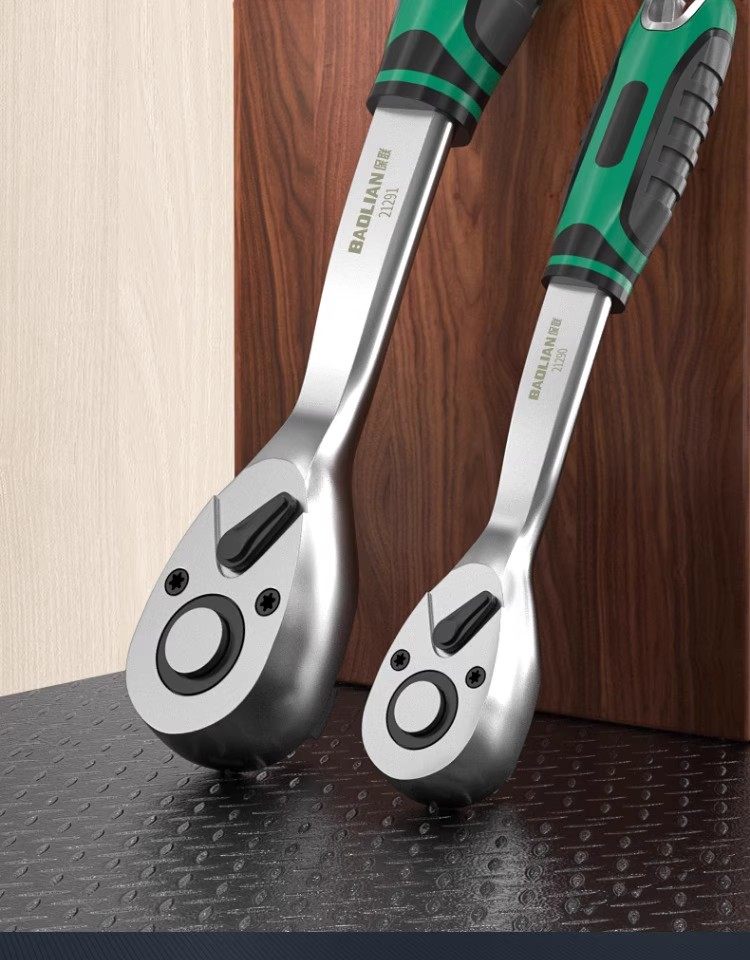 Baolian Ratchet Wrench, 72 Teeth, Bent Handle, Industrial Grade, Non-Slip Groove, Strong Torque, Reversible, Labor-Saving Wrench for Maintenance