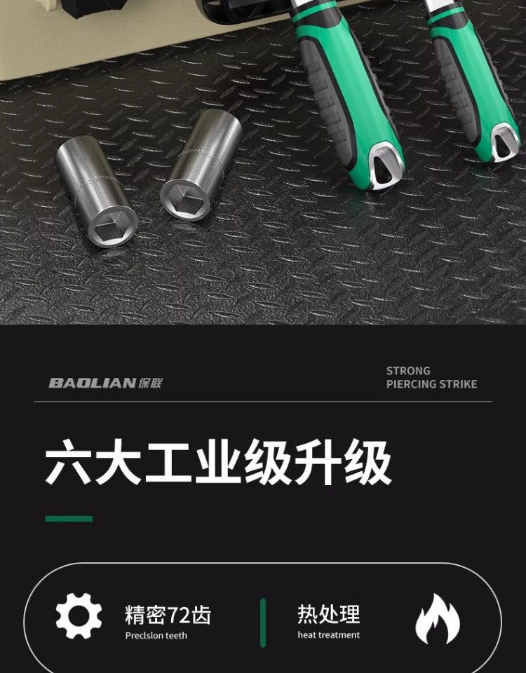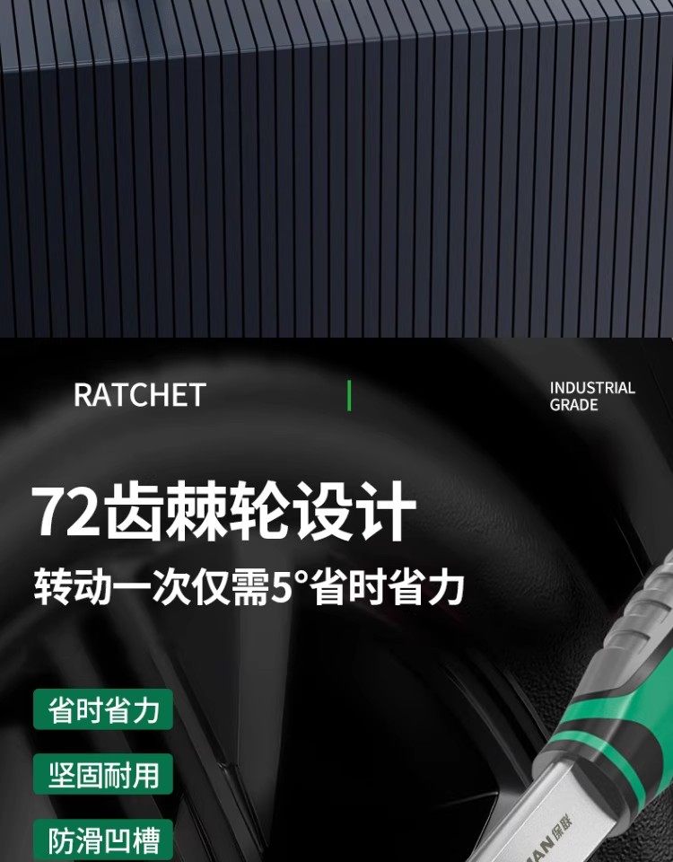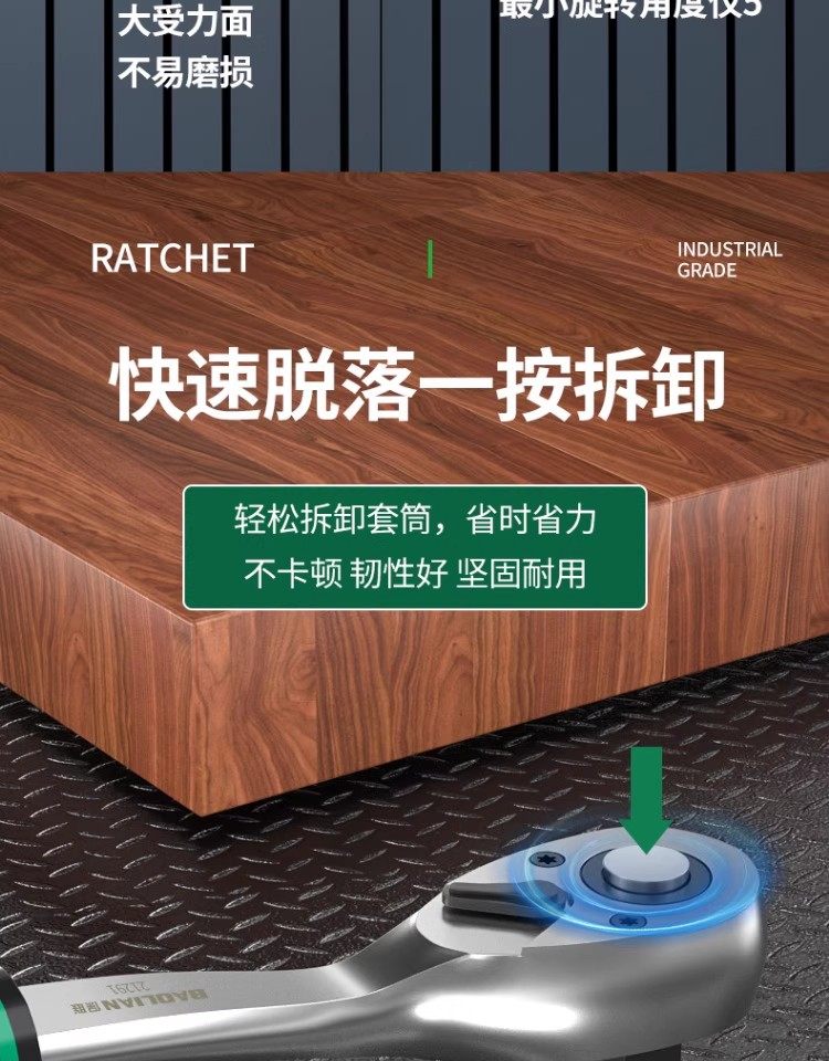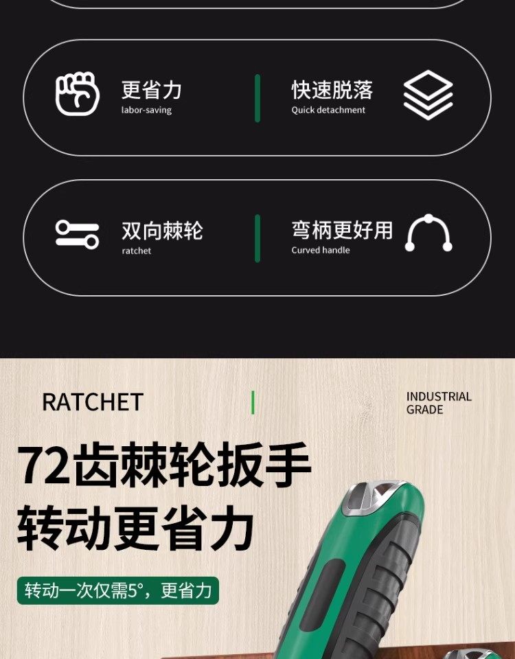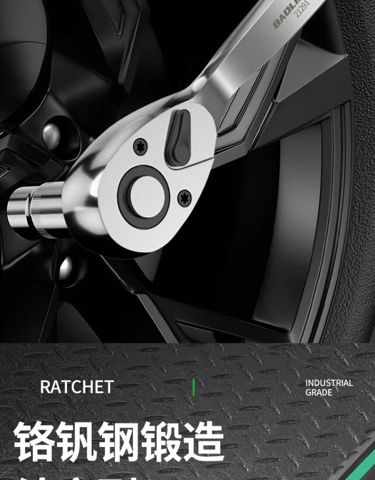 Baolian Ratchet Wrench, 72 Teeth, Bent Handle, Industrial Grade, Non-Slip Groove, Strong Torque, Reversible, Labor-Saving Wrench for Maintenance