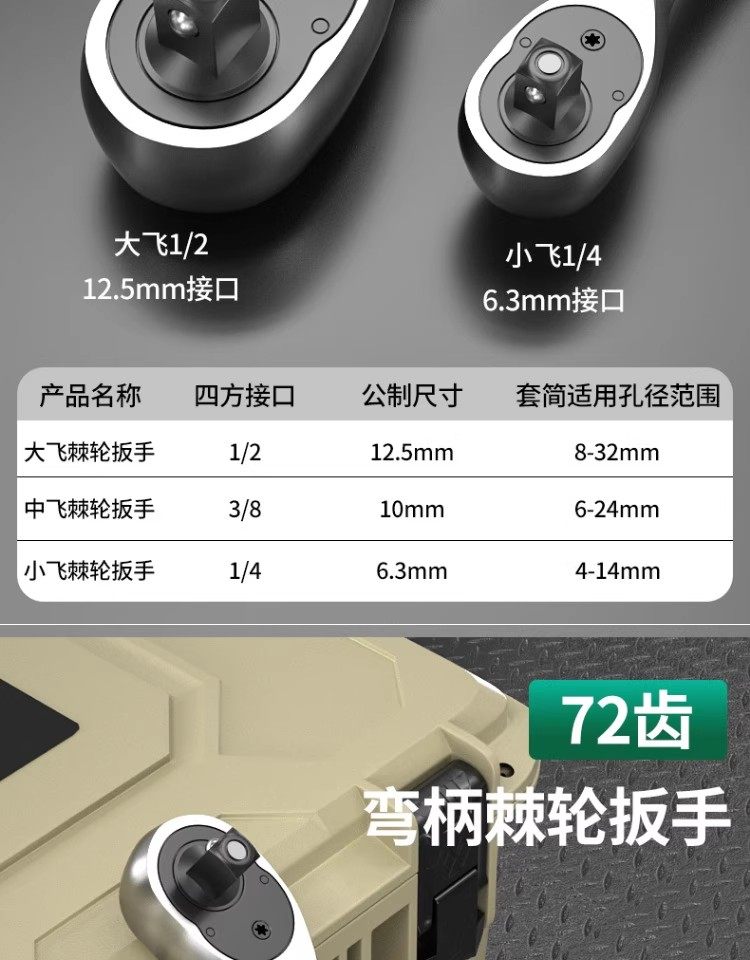 | Color Classification | 1/4 Small Fast Rotating Ratchet Wrench [Alloy Handle 72 Teeth],3/8 Medium Speed Ratchet Wrench [Alloy Handle 72 Teeth],1/2 Large Fast Rotating Ratchet Wrench [Alloy Handle 72 Teeth],1/4 Small Fast Rotating Ratchet Wrench + Universal Socket (5-14mm),3/8 Medium Speed Ratchet Wrench + Universal Socket (7-19mm),1/2 Large Fast Rotating Ratchet Wrench + Universal Socket (9-27mm) |