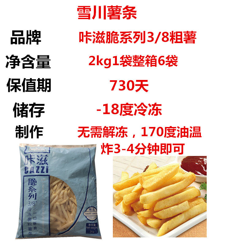 Xuechuan French Fries Crispy 3/8 Frozen Coated Thick French Fries 2kg Fried Snacks Semi-Finished Baking Ingredients Free Shipping