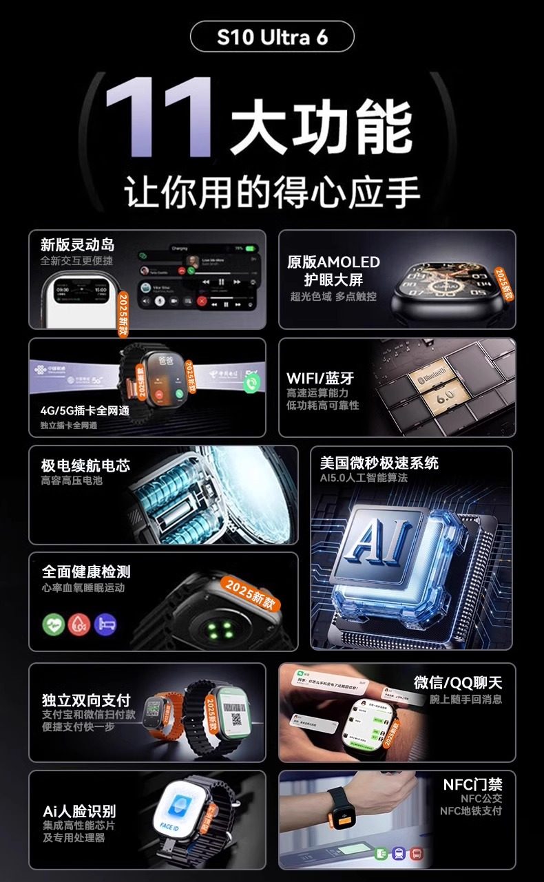 [2025 New Honeycomb Edition]Huaqiangbei S10Ultra6 Top-Tier Version Watchs9 Phone Watch Smart with Sim Card Slot, Downloadable, for Teenagers, Adults, Women, Men, Sports, Official Store, Genuine Product
