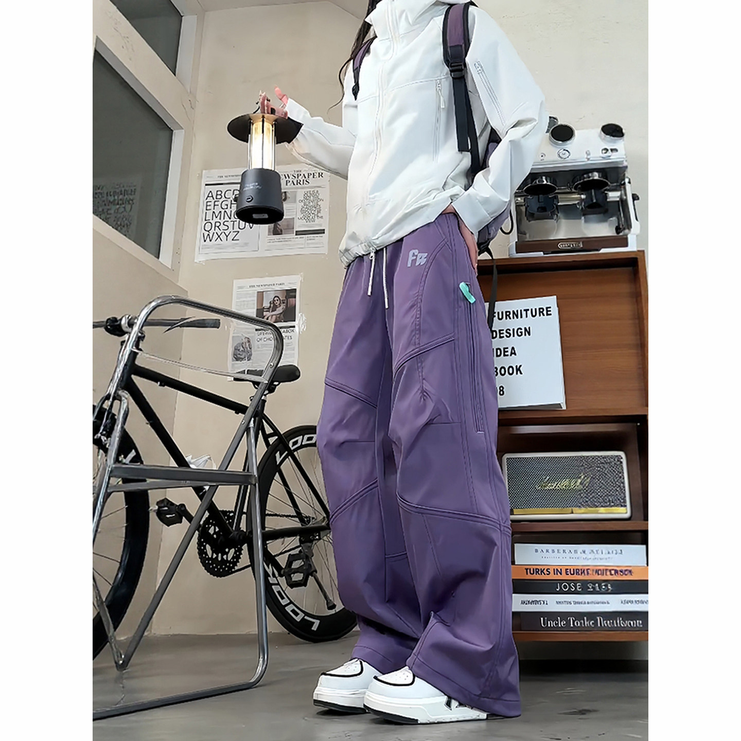 Black Plum Purple Softshell Fleece-Lined Tactical Pants for Men, Autumn and Winter Dopamine American-Style Work Pants, Straight-Leg Outdoor Hiking Sports Pants