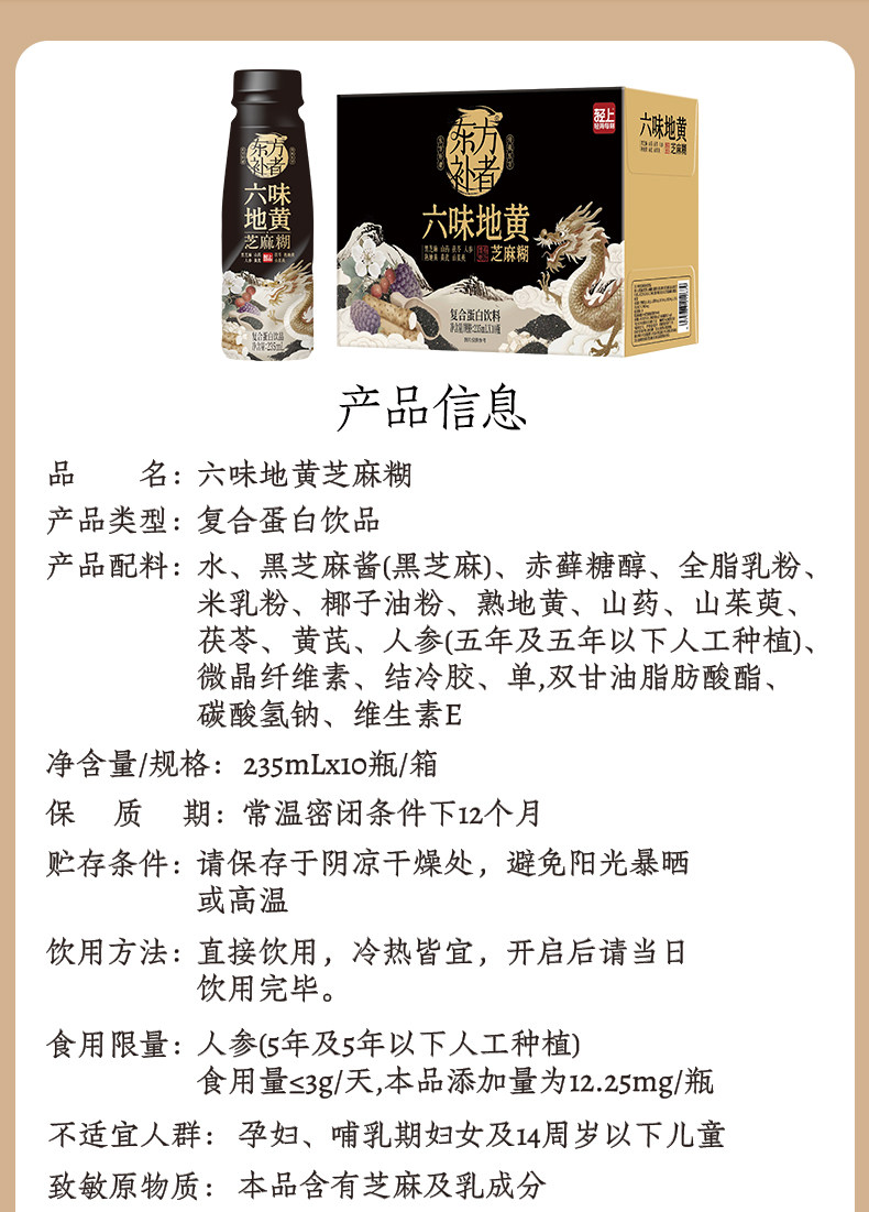 Lightly Flavored Official Flagship Store Genuine Liuwei Dihuang Black Sesame Paste Compound Plant Protein Drink 235ml*10 Bottles