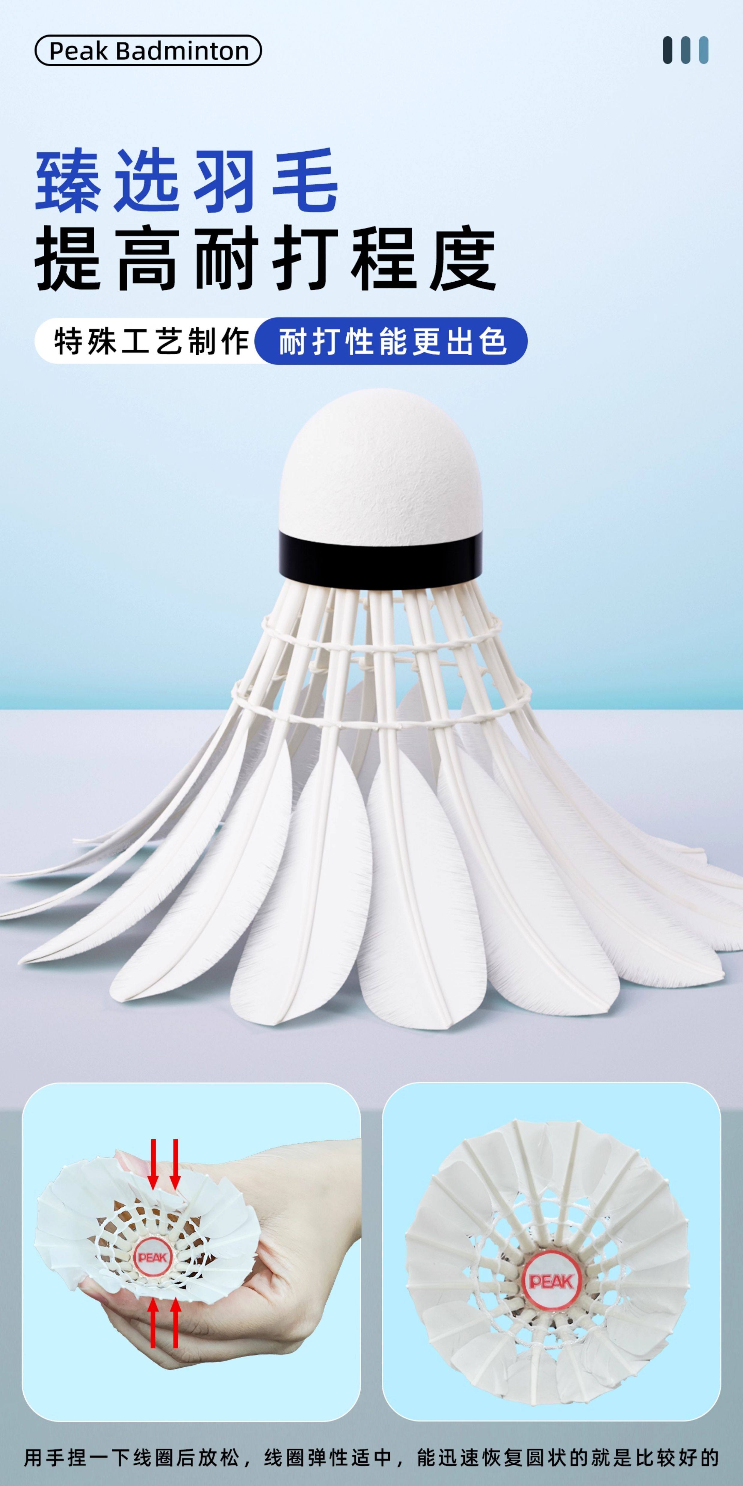 Peak Badminton Durable Genuine Professional Duck Feather Shuttlecock for Indoor and Outdoor Competition Training Windproof Nylon Durable Badminton