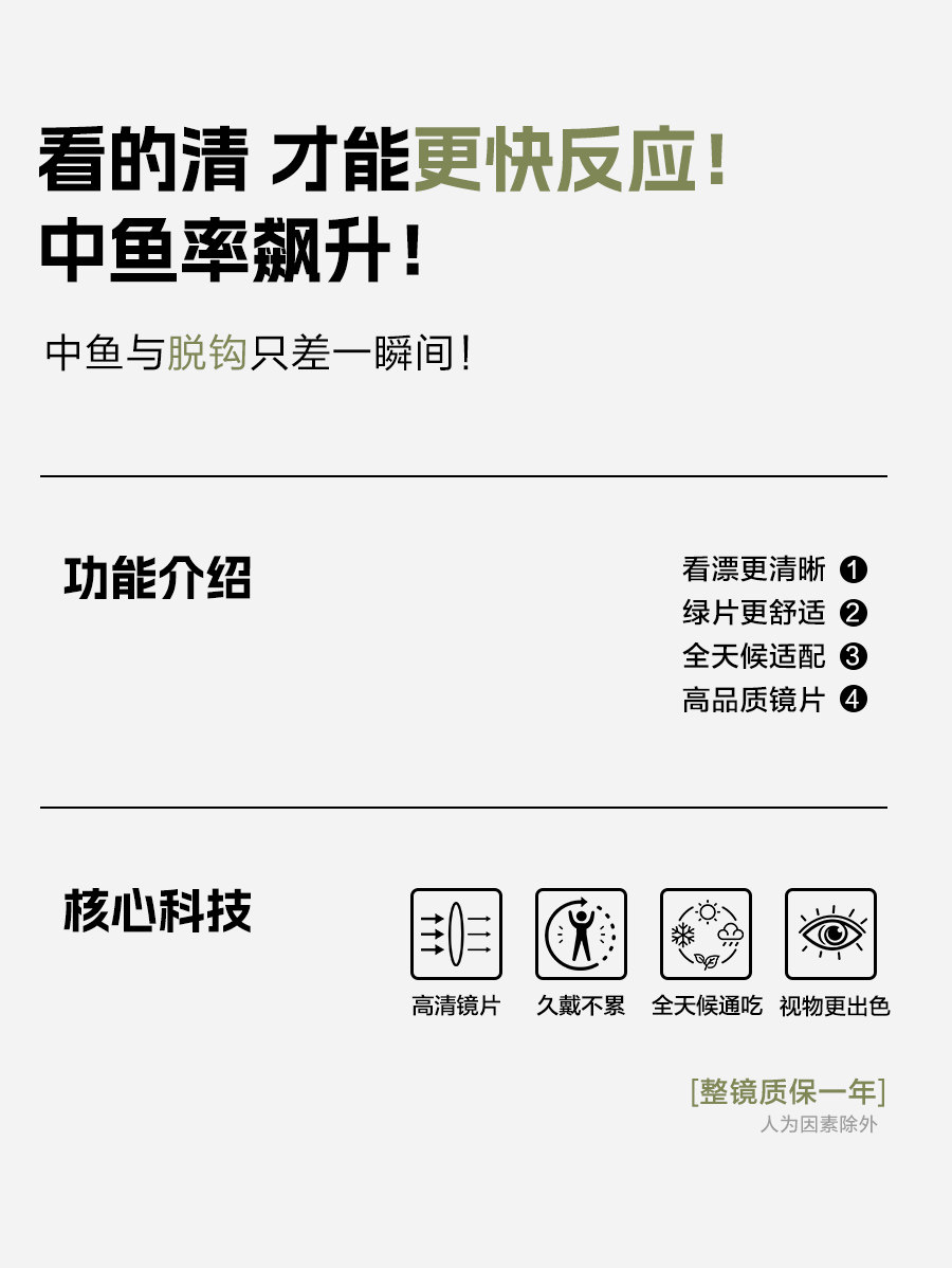 | Color Classification | Yanjie All-Weather Fishing Goggle Clip-On Lens Selection Guide,【Dy-J1】Rivers and Aquatic Plants See through Underwater Obstacles,【Dy-J2】Sunlight on the Sea Surface - Patented Photochromic Lens,【Dy-J3】The Beauty of Fish in Turbid Waters Is Improved,【Dy-J4】Rainy Night Fishing Bottom Light Brightens Vision,【Dy-J5】Fishing in Snowy Weather Increases Light Transmittance |