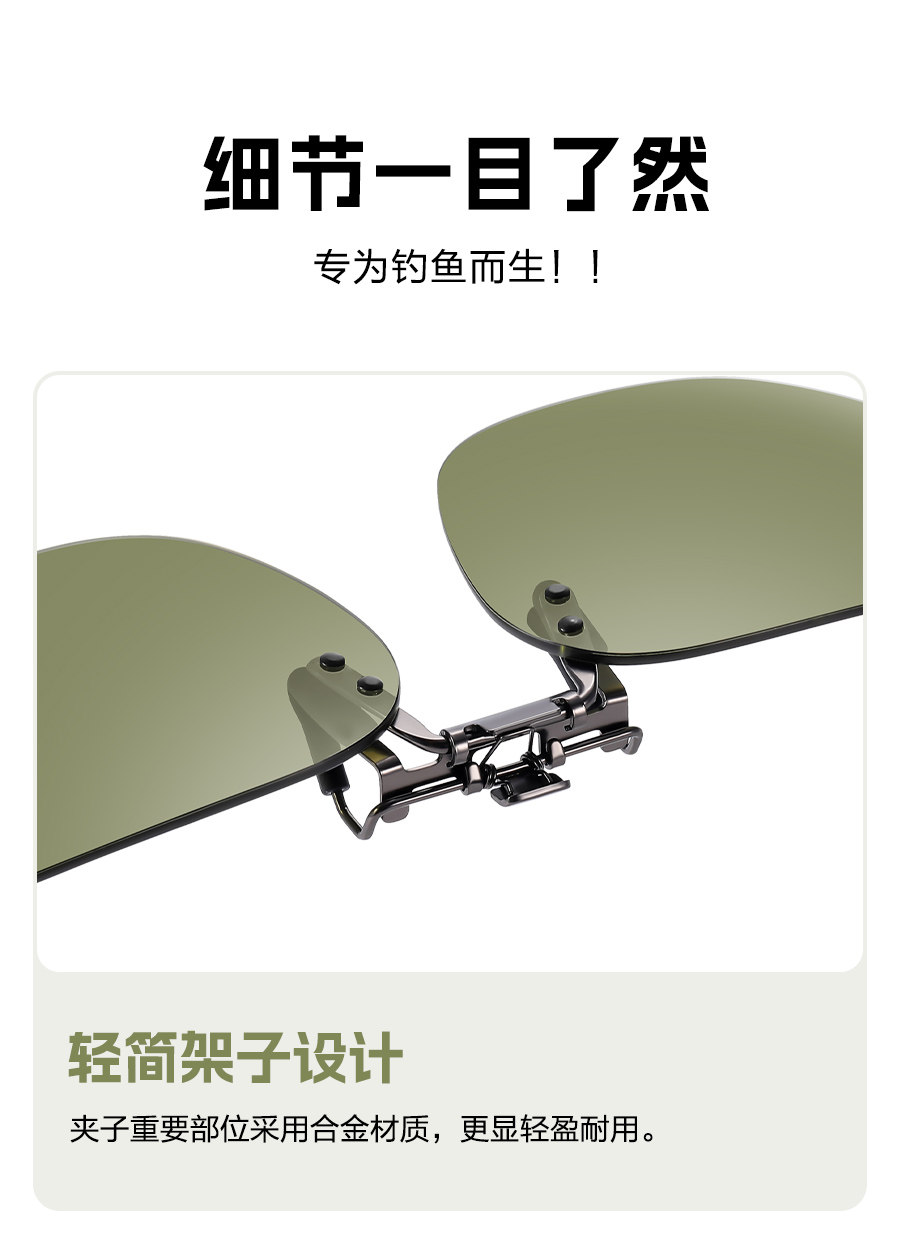 Fishing Glasses Clip-On for Viewing Floats, Specialized for Men with Nearsightedness, Polarized Lenses, High-Definition Underwater Viewing, Outdoor Sunglasses